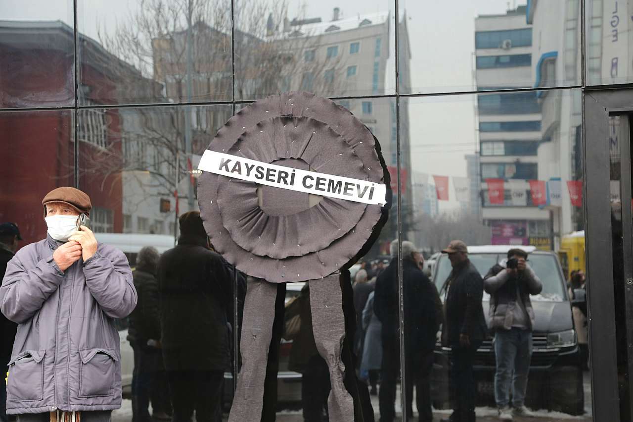 Alevi Örgütlerinden CHP Kayseri İl Başkanlığı Önüne Siyah Çelenk