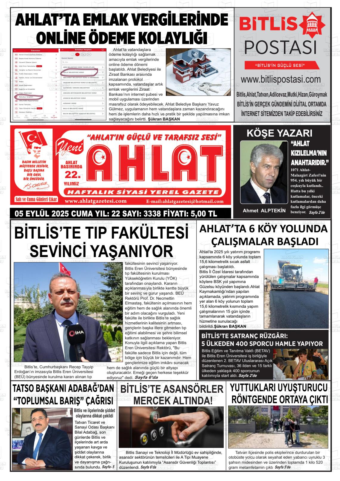 Bİtlİs Yerel Gazeteleri 24 Ekim 2025, Cuma Günü Manşeti