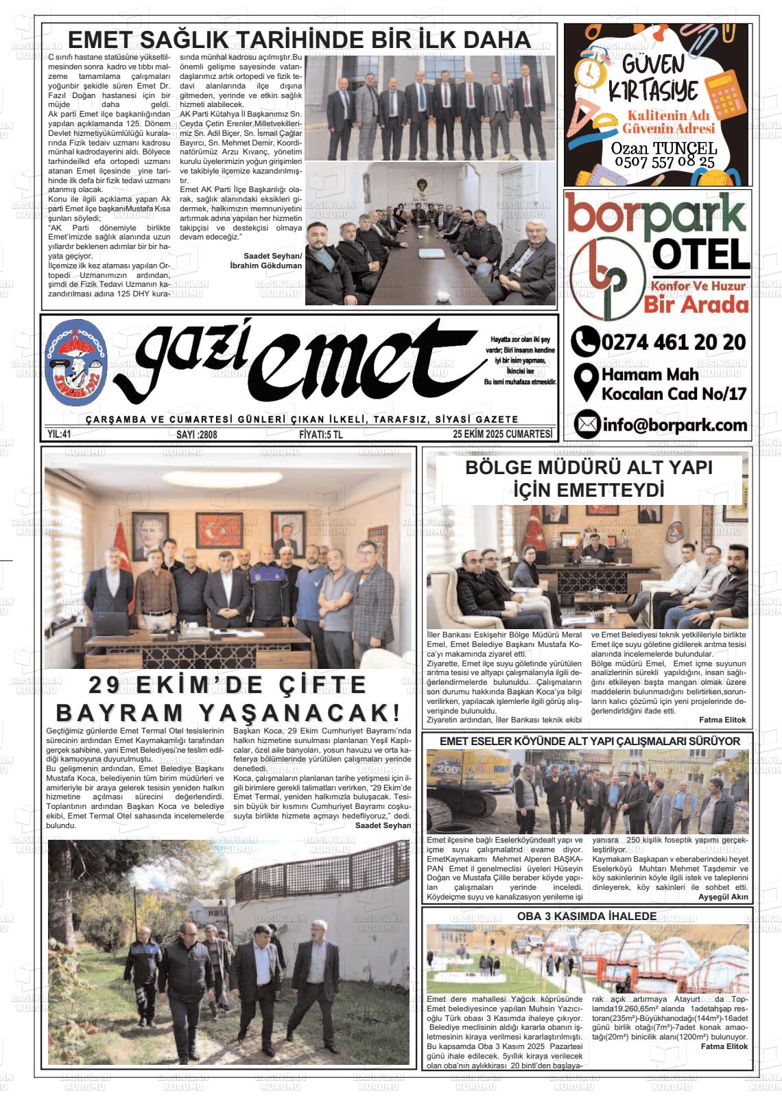 Kütahya Yerel Gazeteleri 24 Ekim 2025, Cuma Günü Manşeti