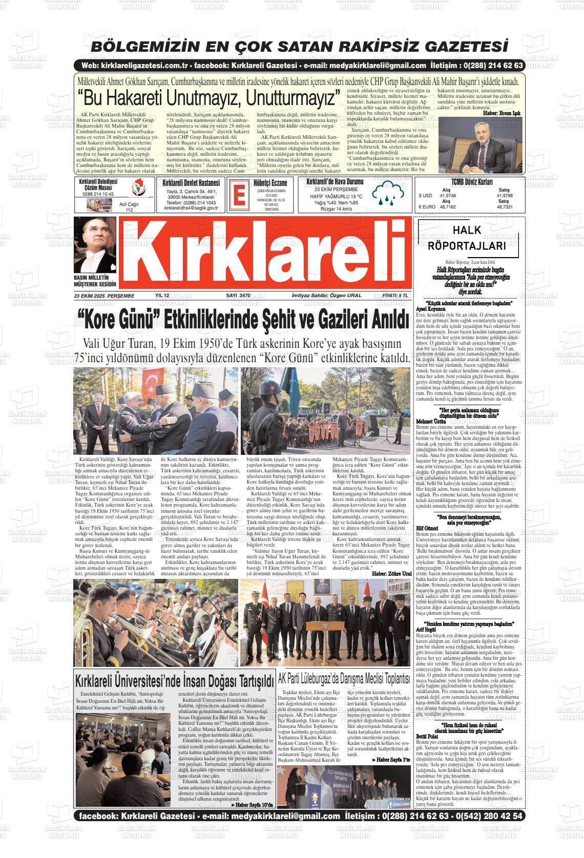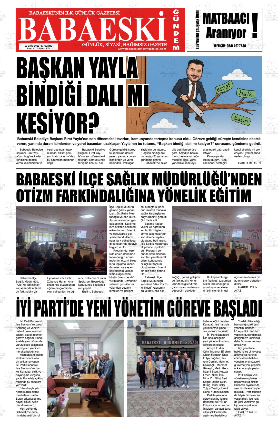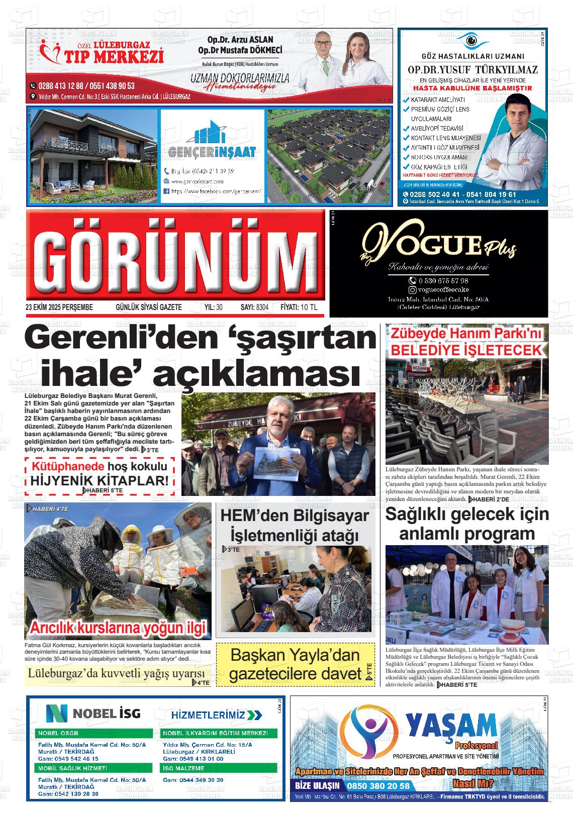 Kırklarelİ Yerel Gazeteleri 23 Ekim 2025, Perşembe Günü Manşeti