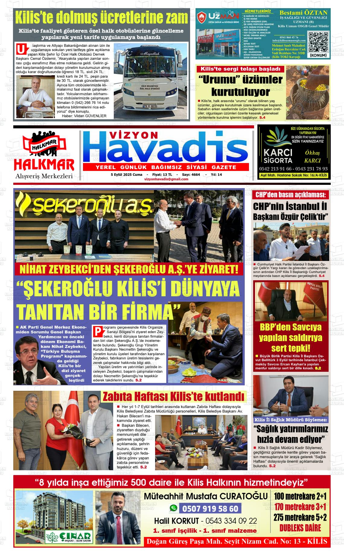 Kİlİs Yerel Gazeteleri 24 Ekim 2025, Cuma Günü Manşeti
