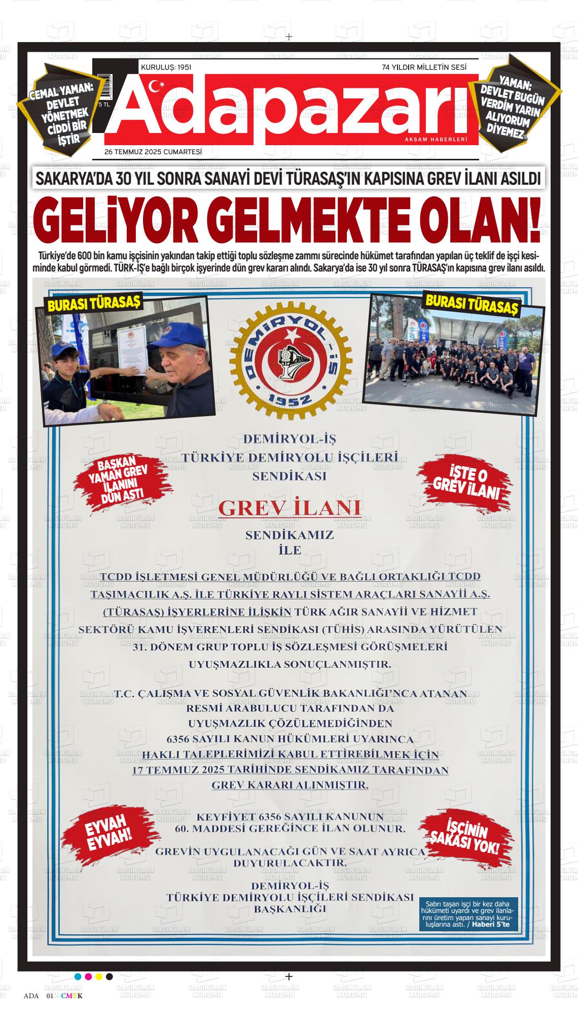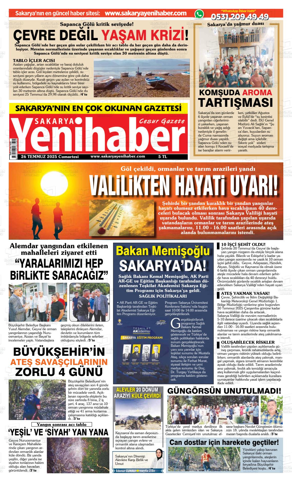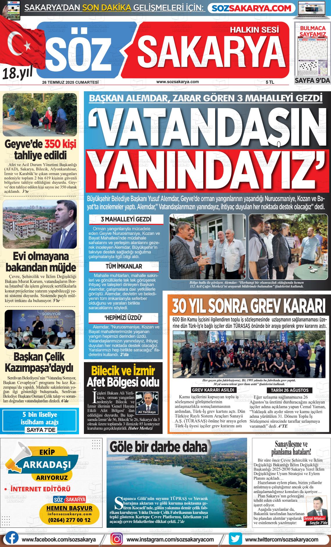 Sakarya Yerel Gazeteleri 23 Ekim 2025, Perşembe Günü Manşeti