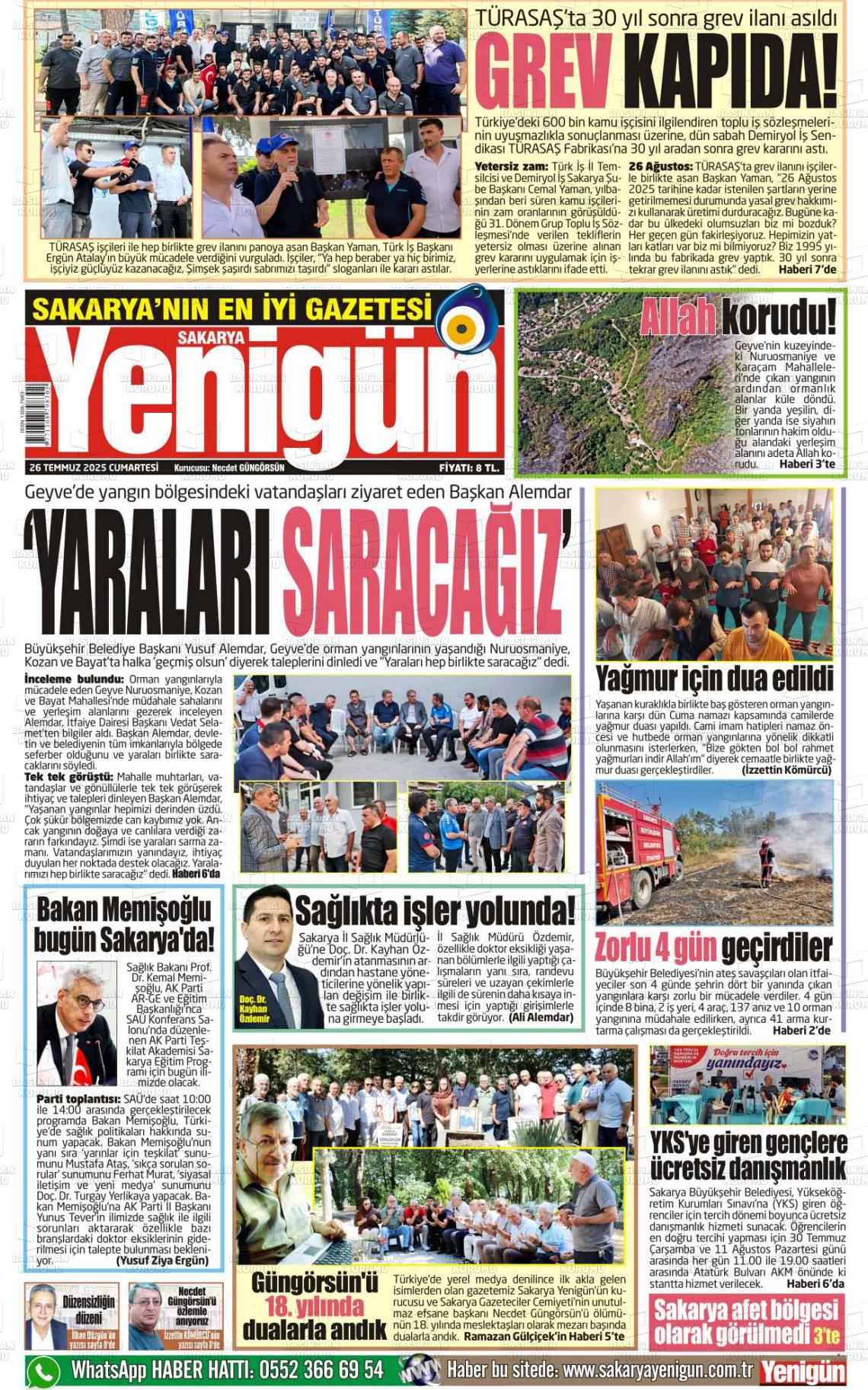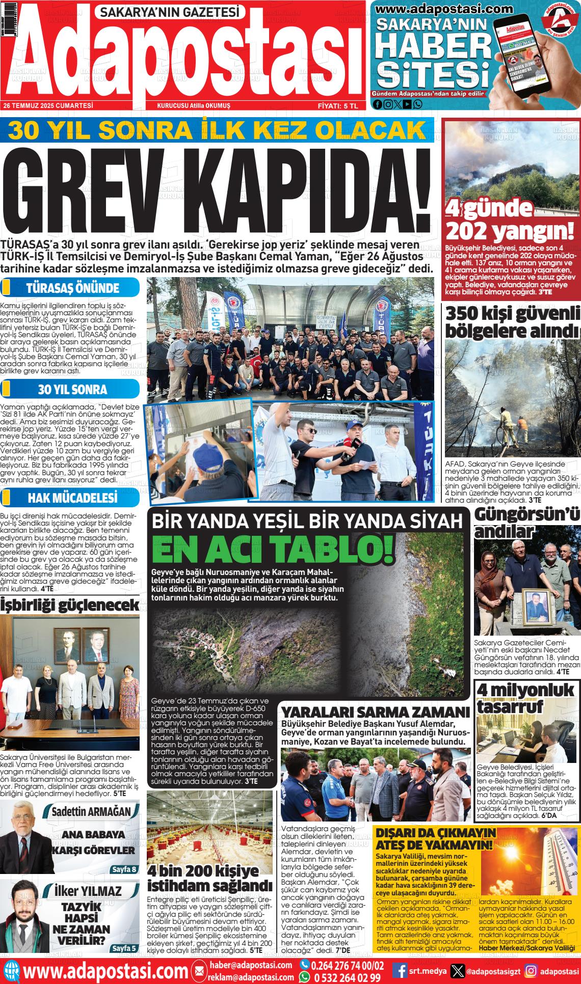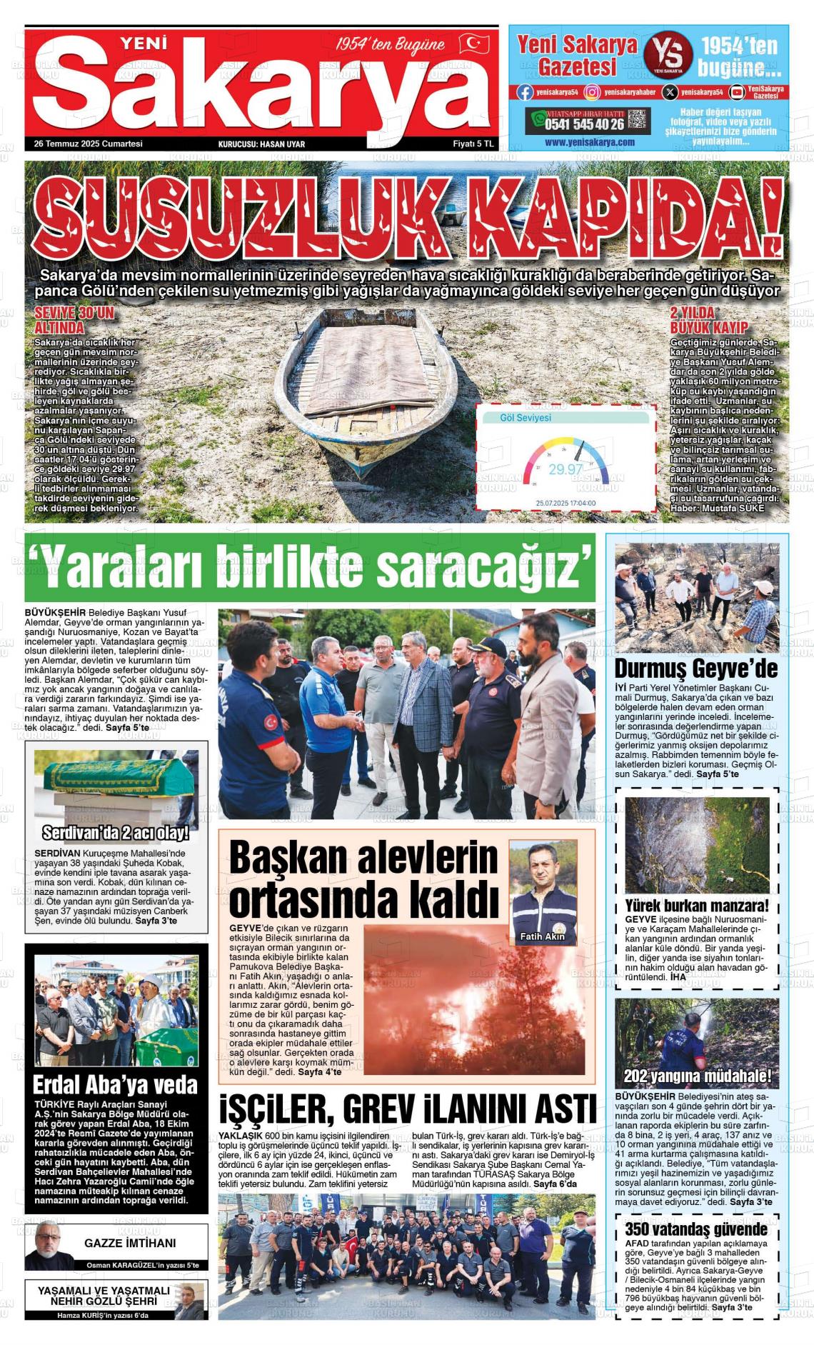 Sakarya Yerel Gazeteleri 23 Ekim 2025, Perşembe Günü Manşeti