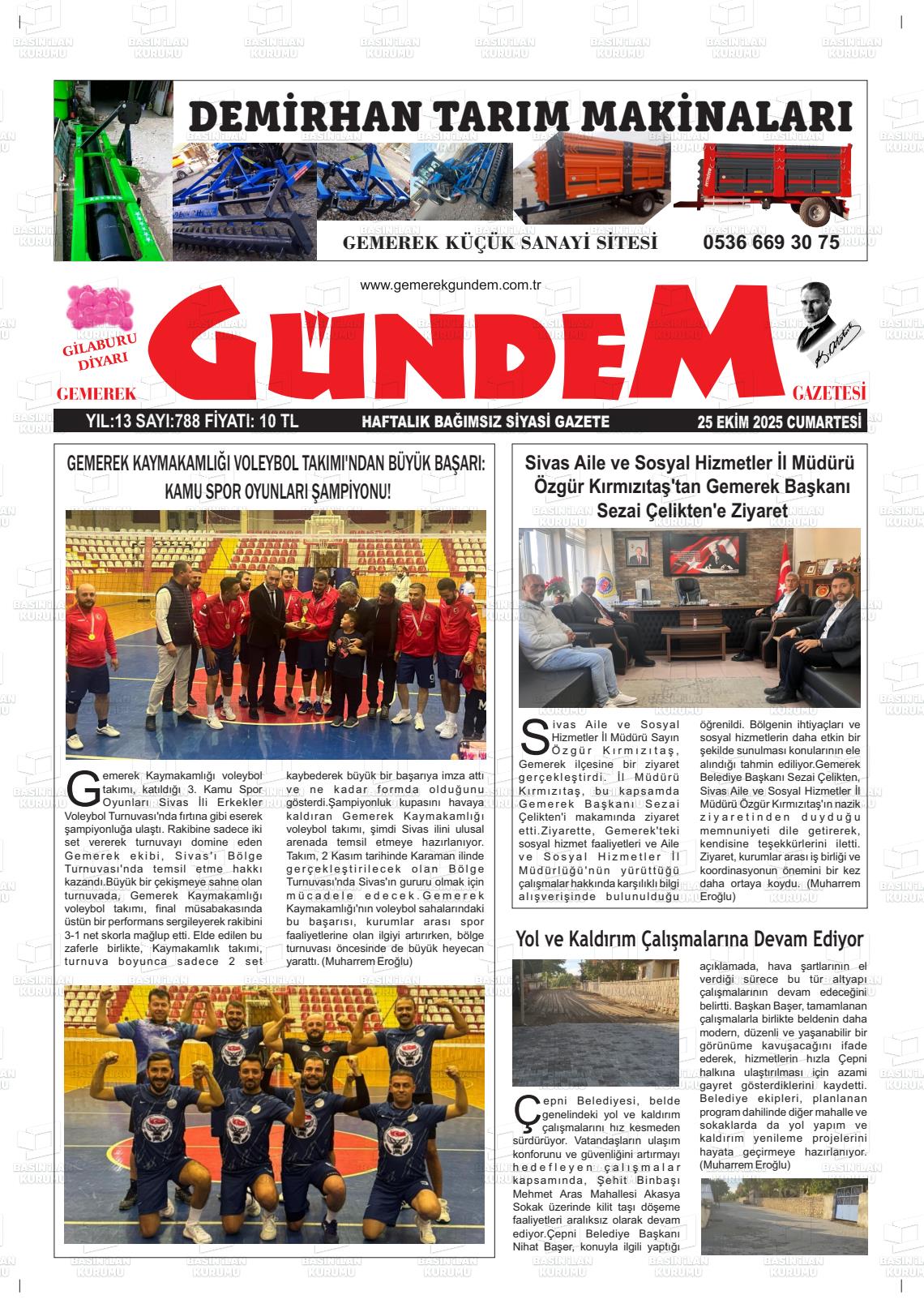 Sİvas Yerel Gazeteleri 25 Ekim 2025, Cumartesi Günü Manşeti