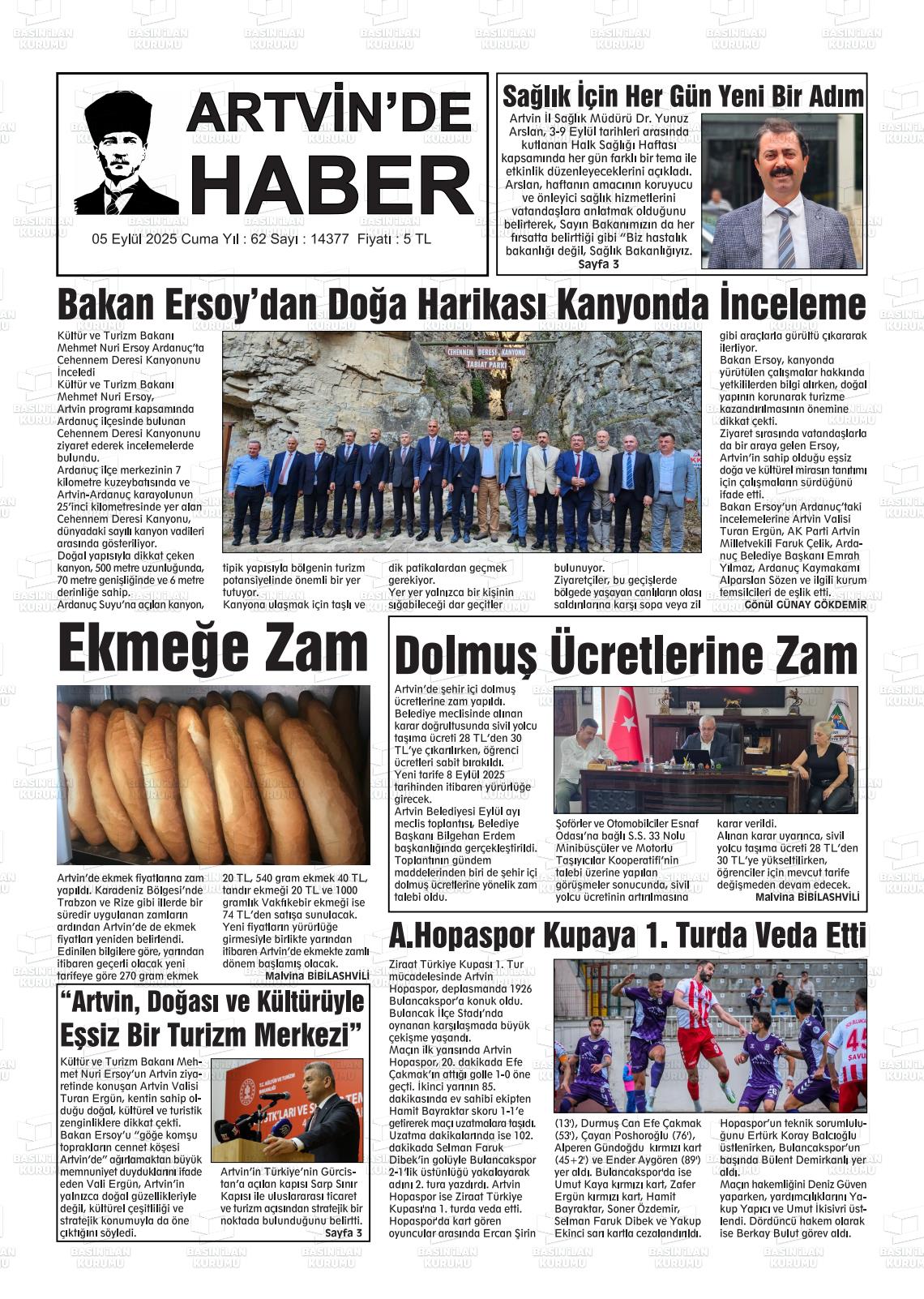 Artvİn Yerel Gazeteleri 23 Ekim 2025, Perşembe Günü Manşeti