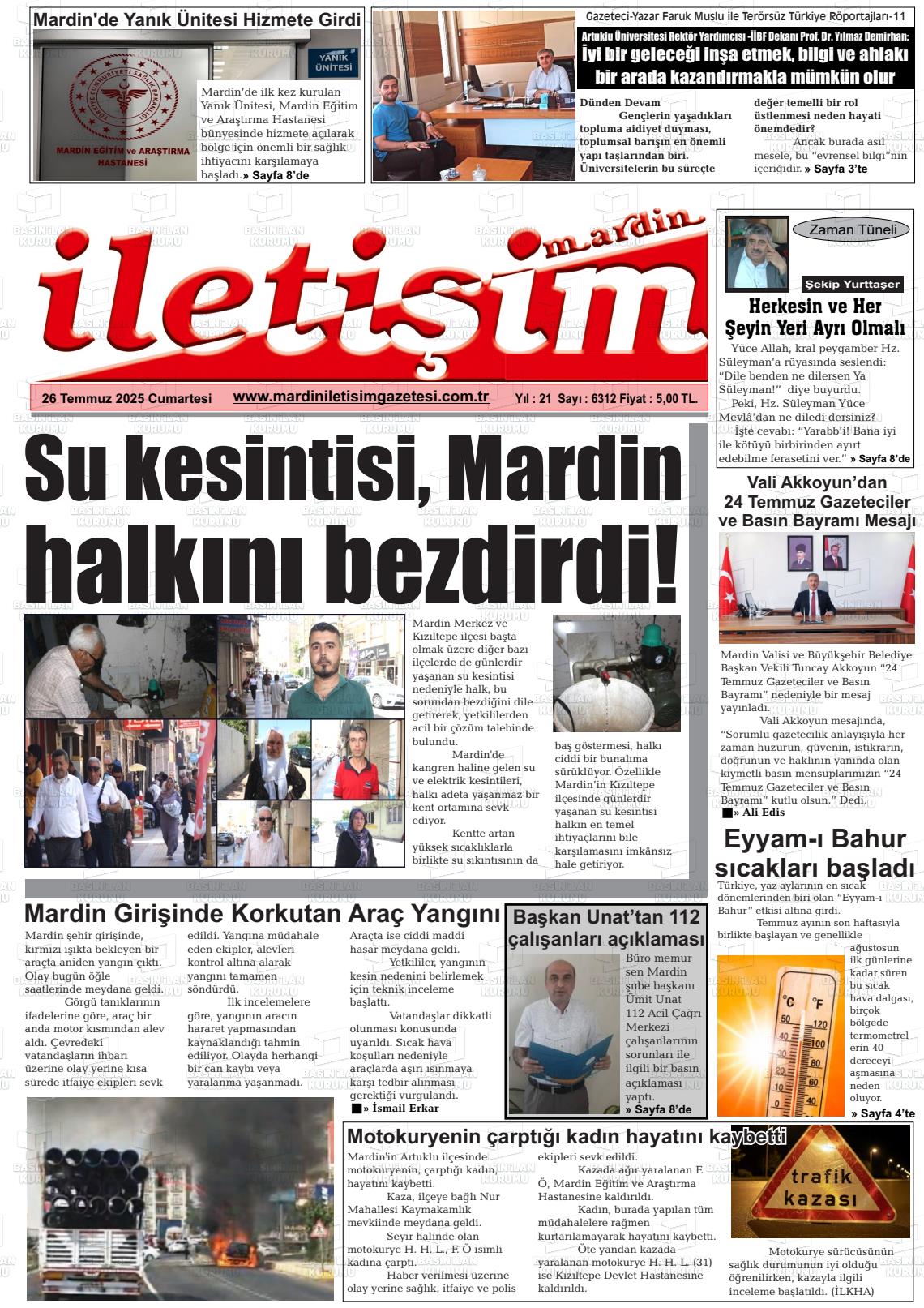 Mardİn Yerel Gazeteleri 23 Ekim 2025, Perşembe Günü Manşeti