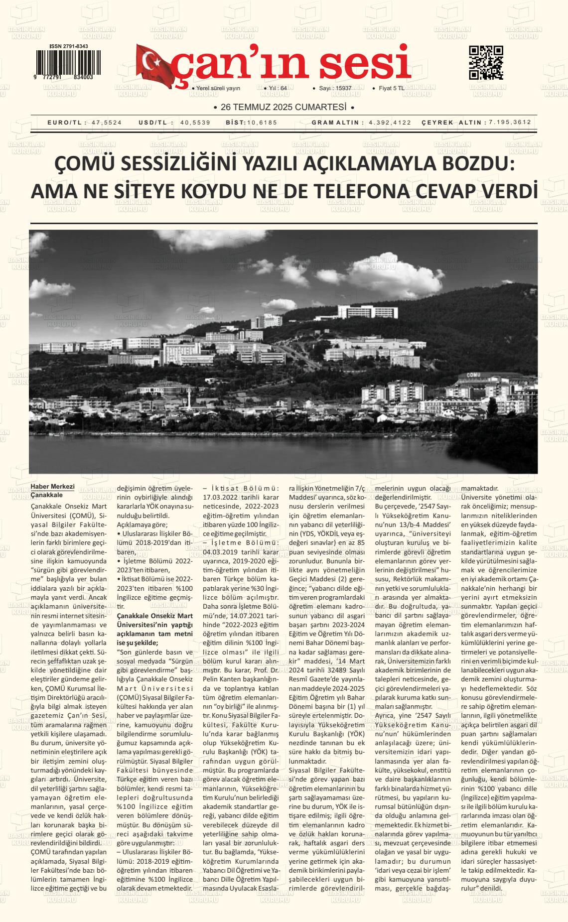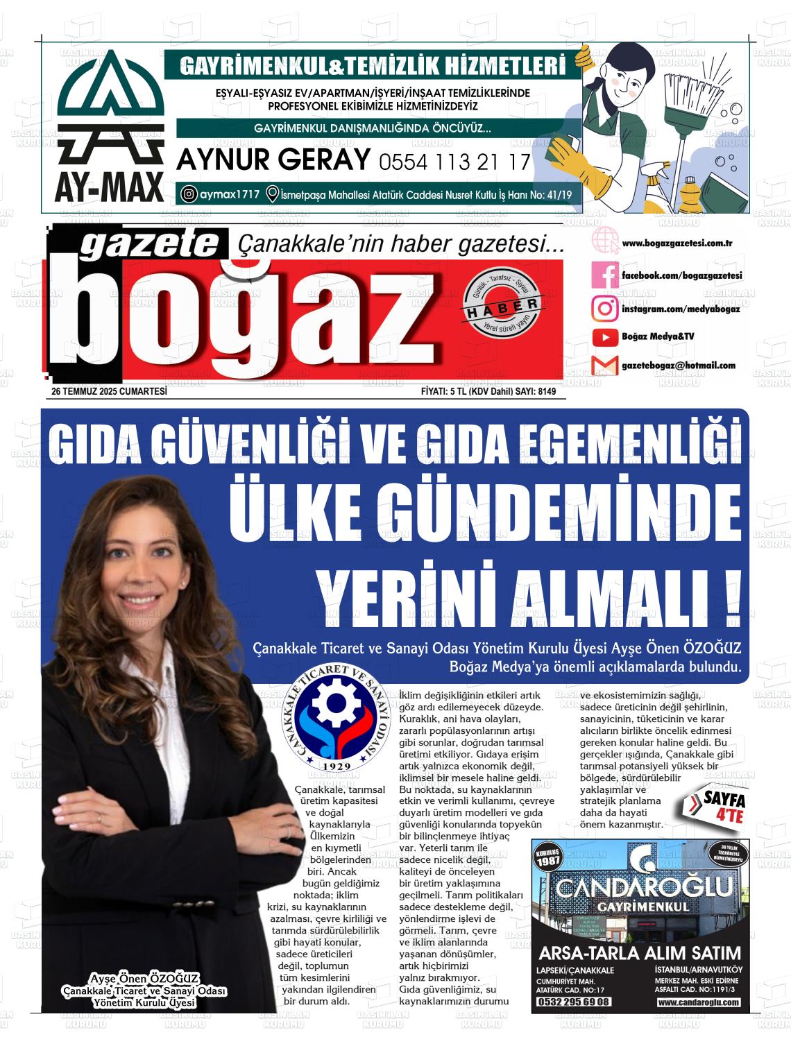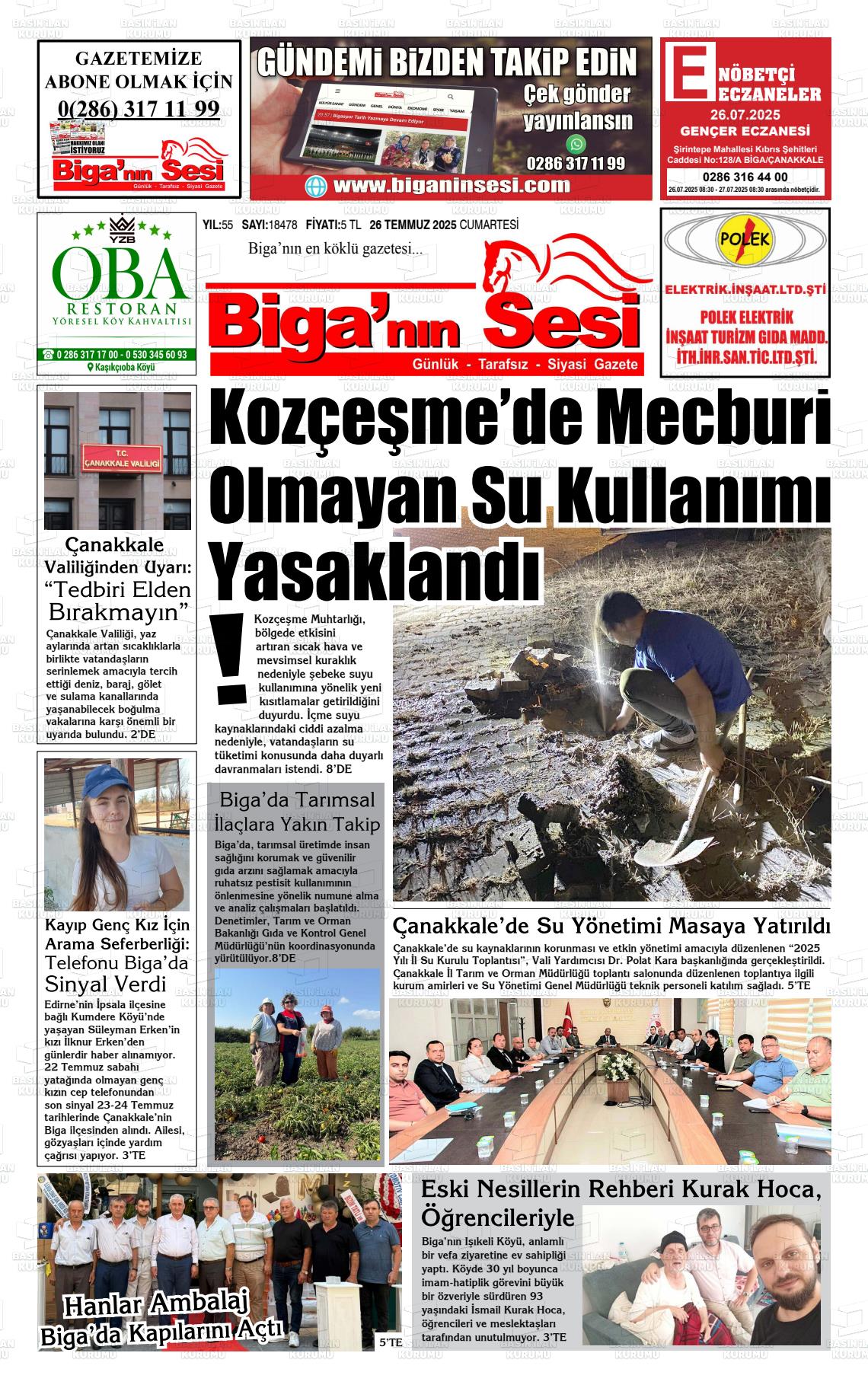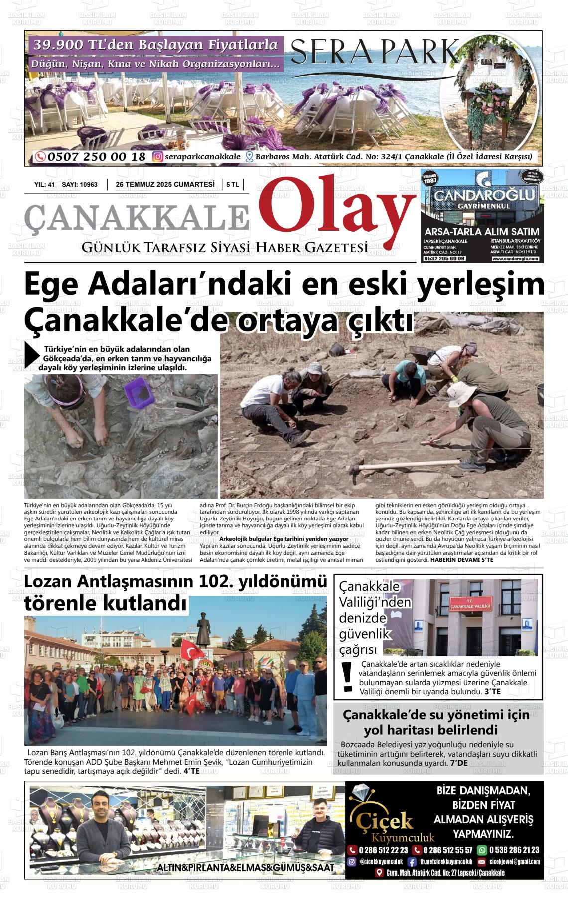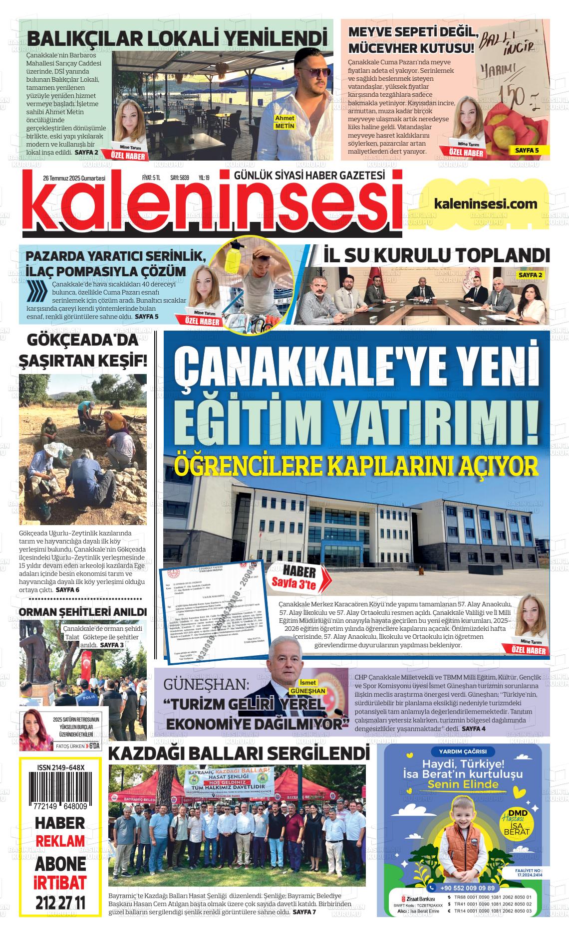 Çanakkale Yerel Gazeteleri 09 Aralık 2025, Salı Günü Manşeti