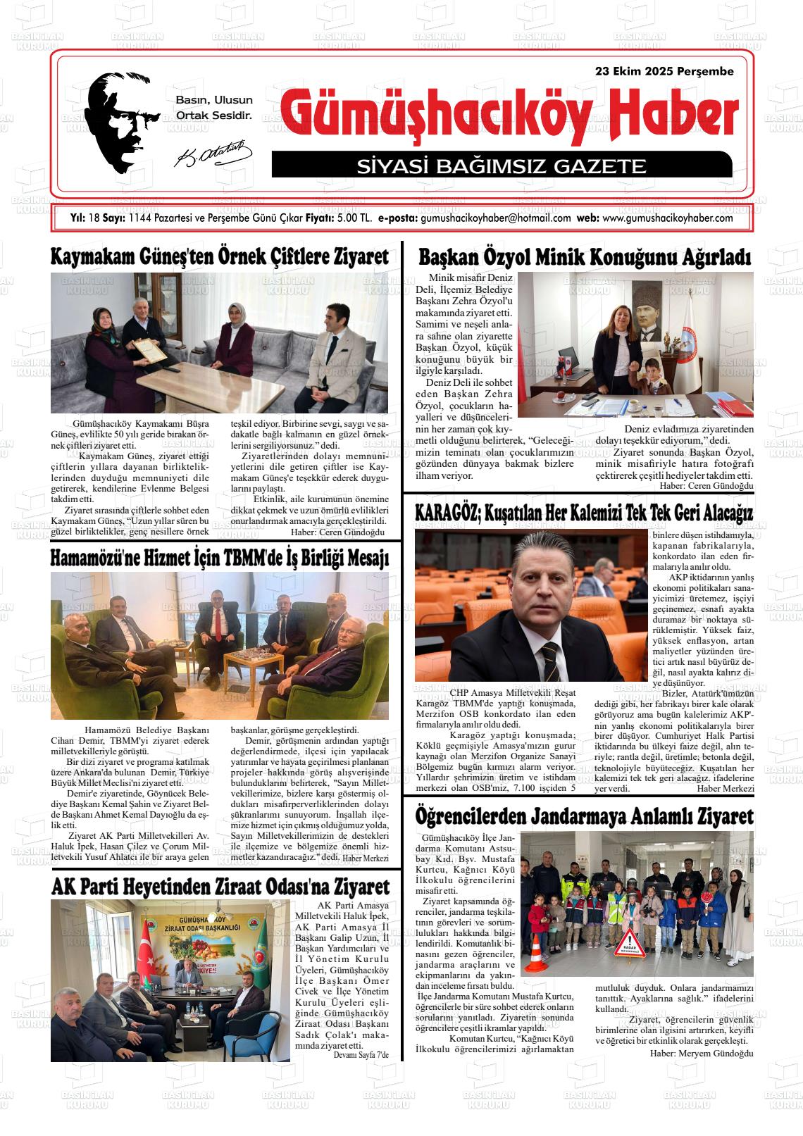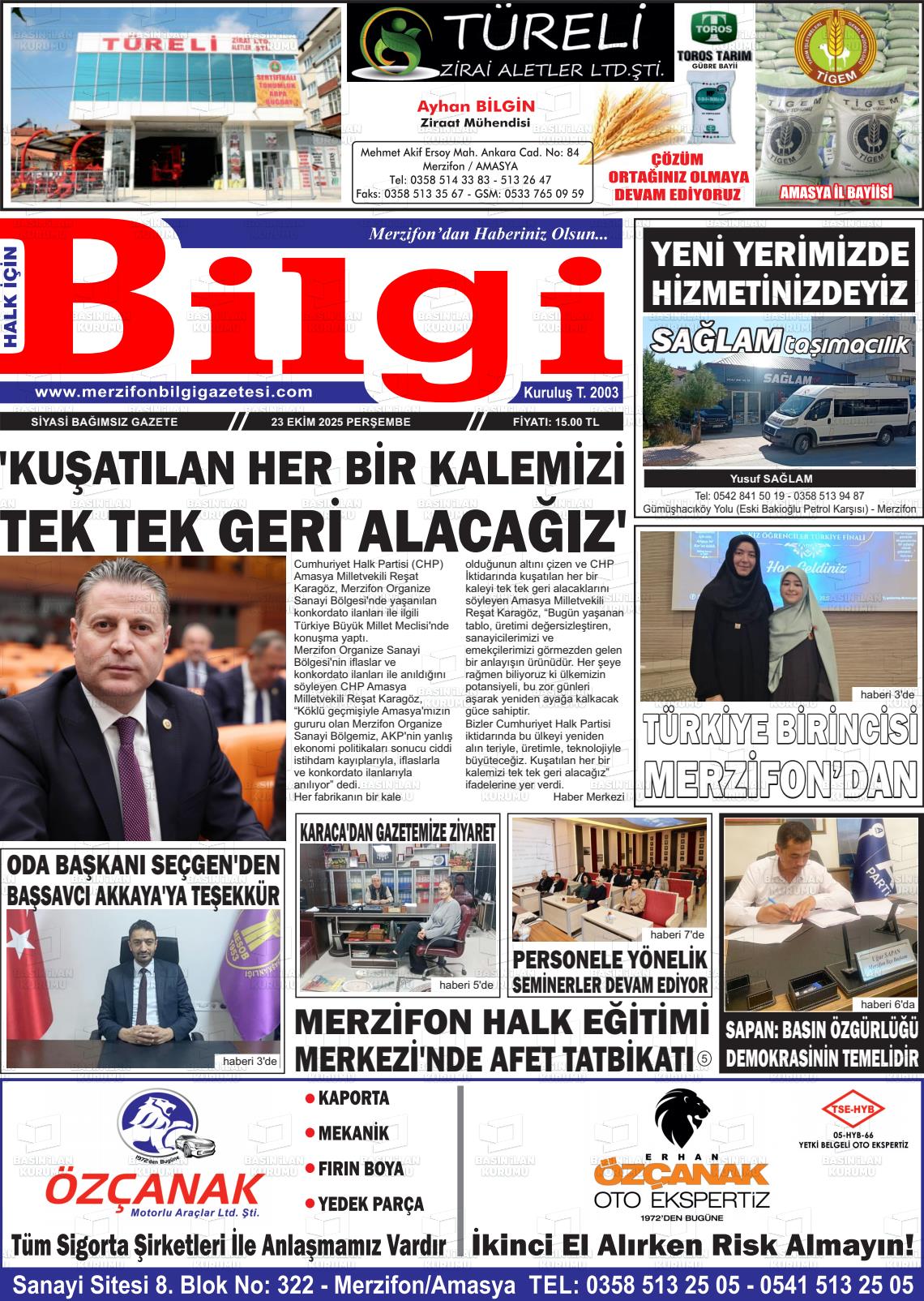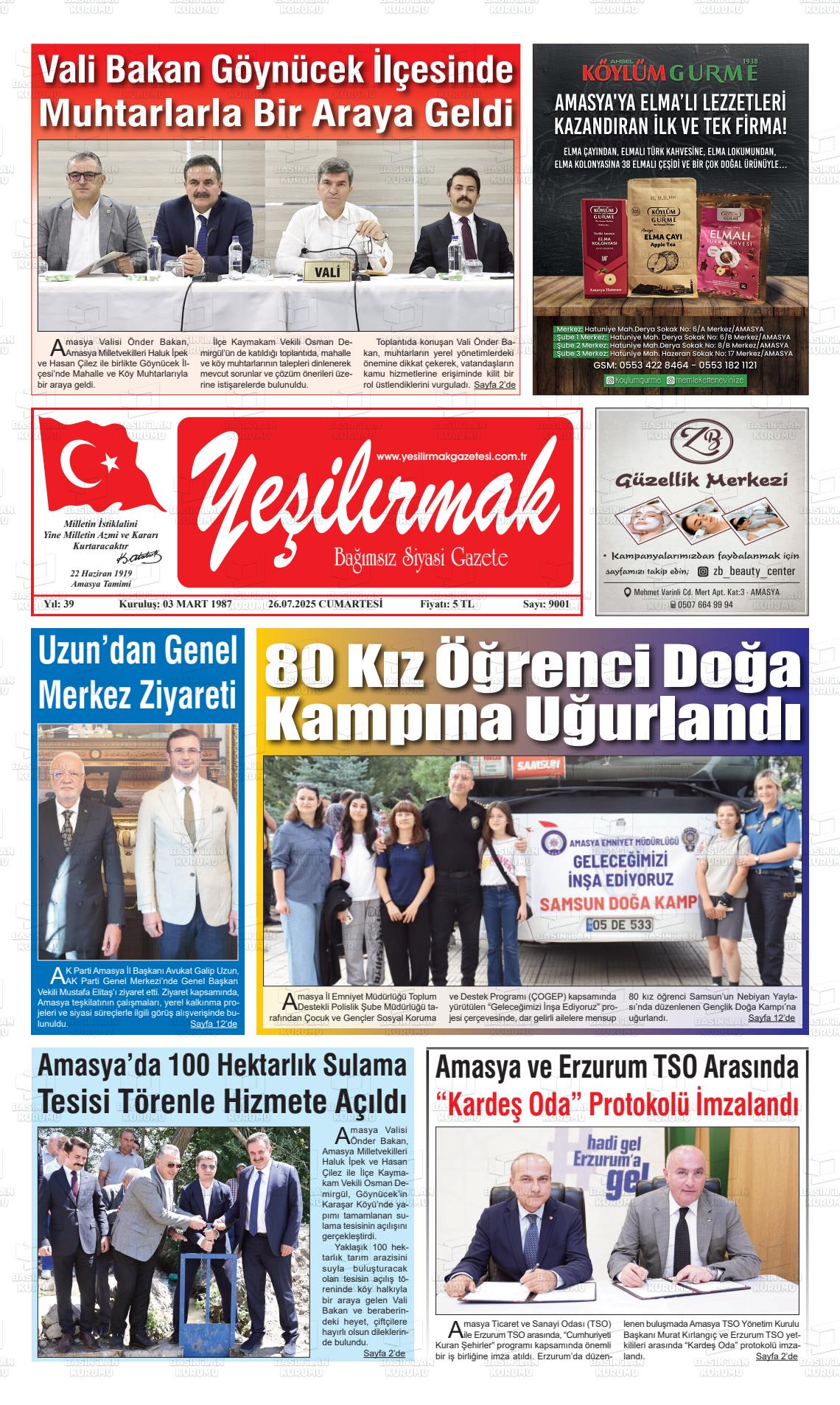 Amasya Yerel Gazeteleri 08 Aralık 2025, Pazartesi Günü Manşeti