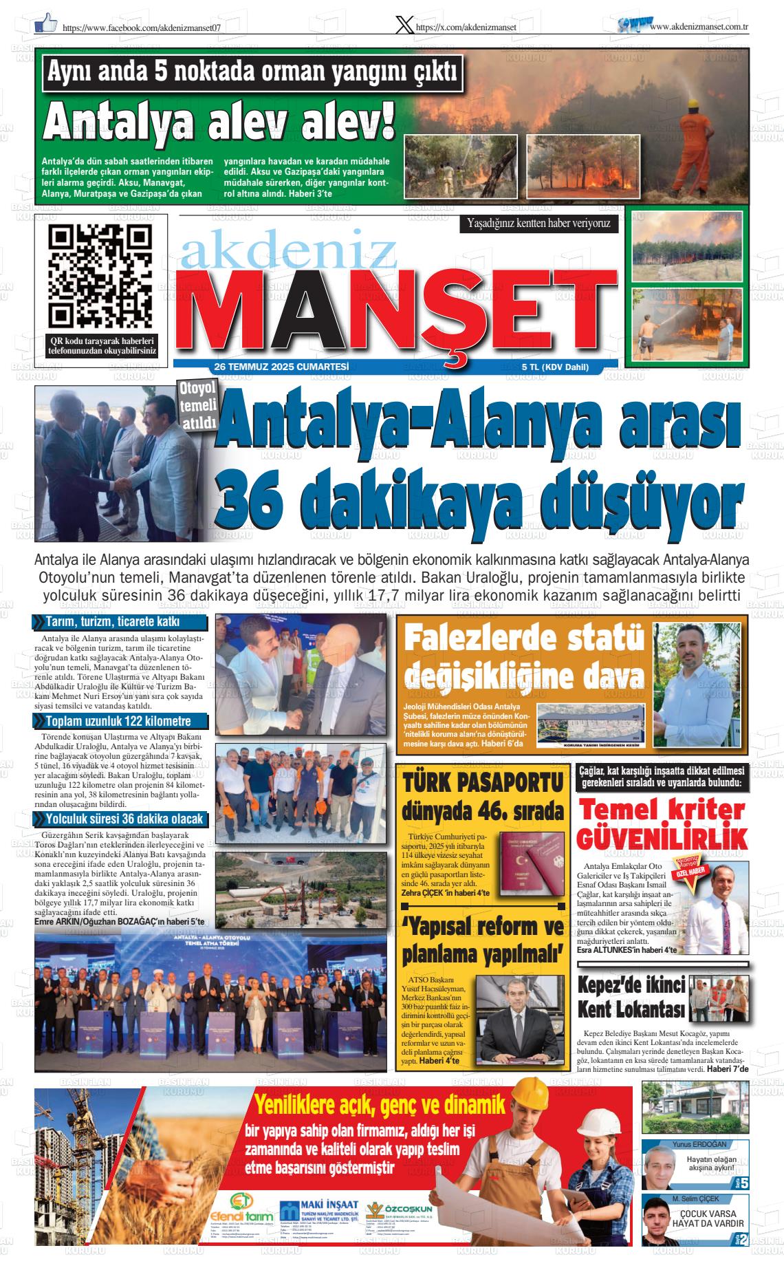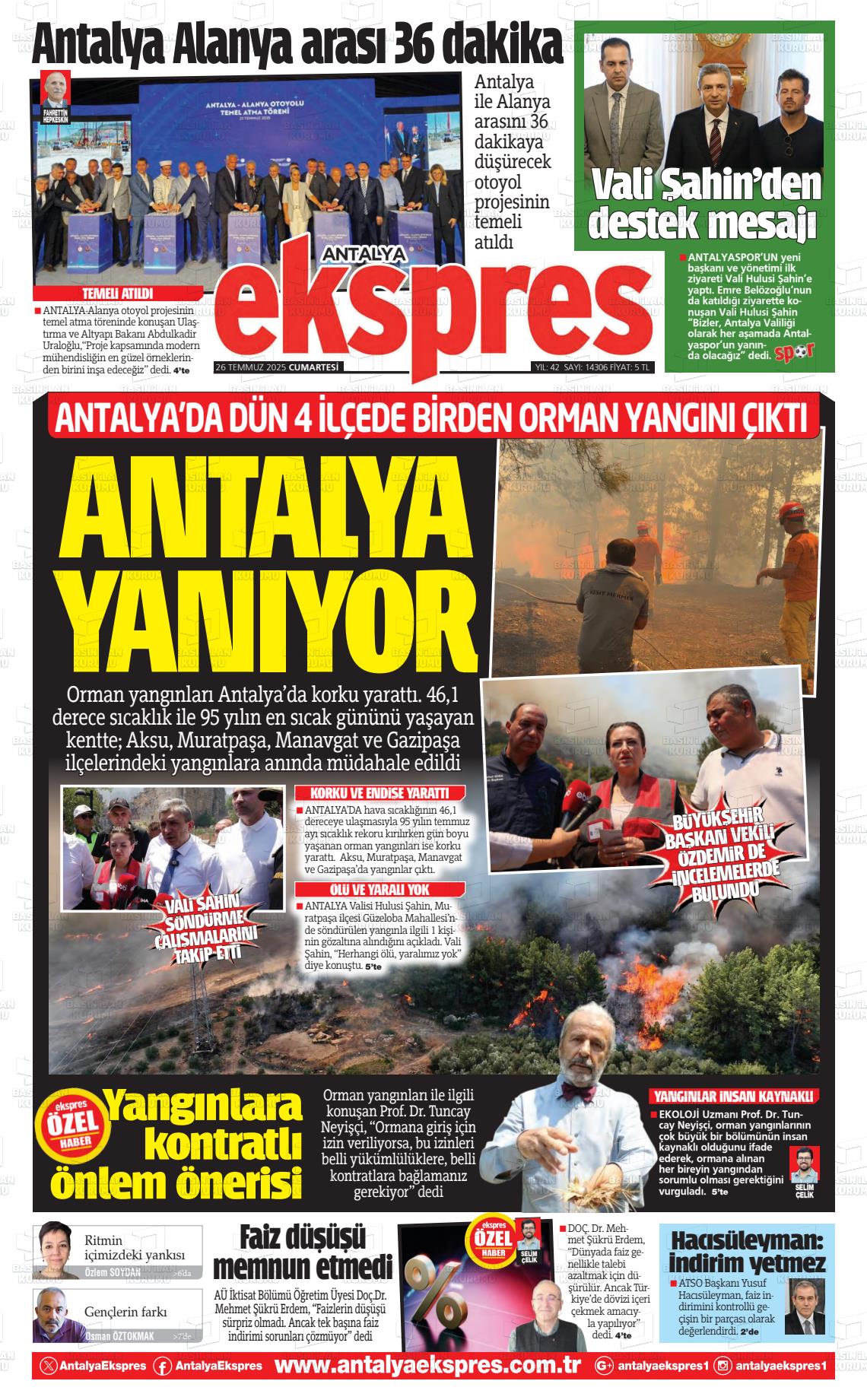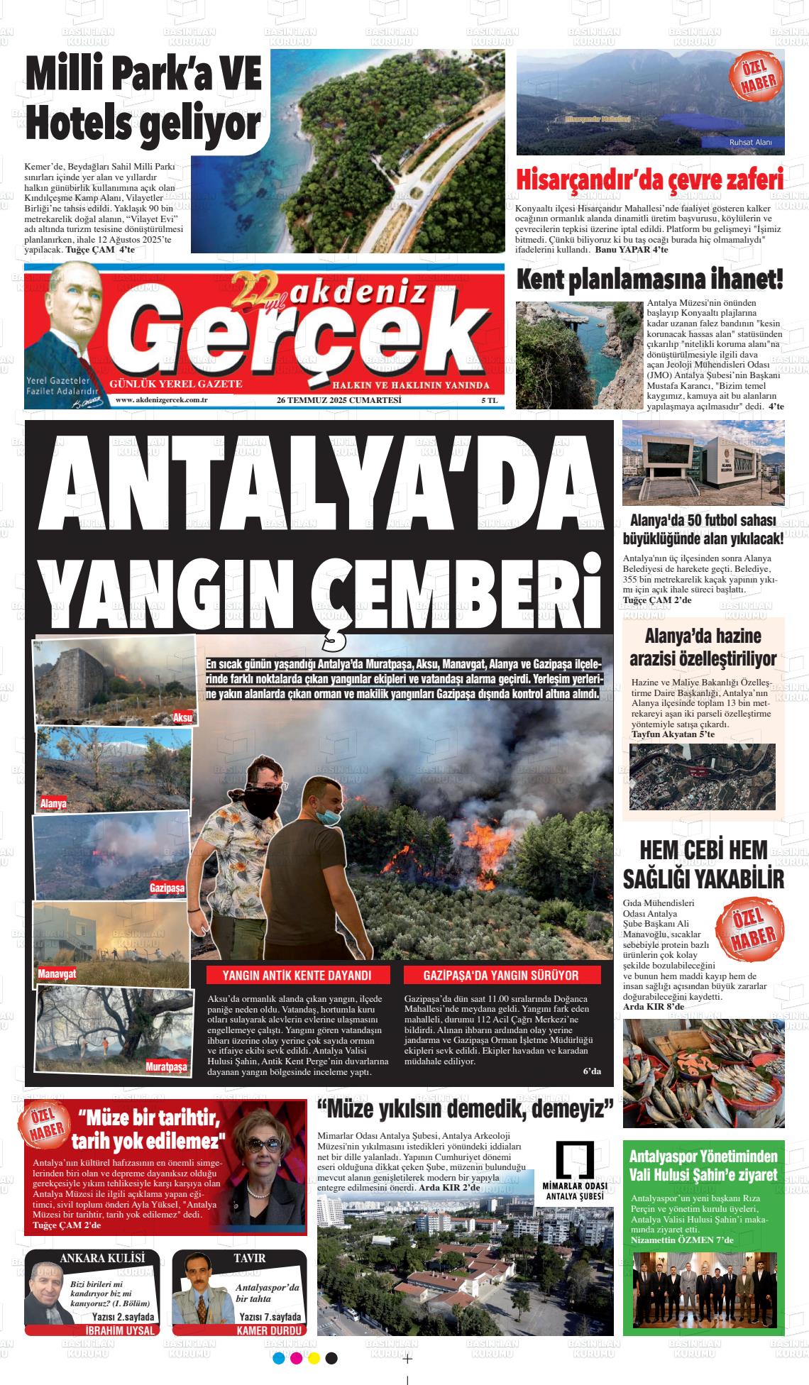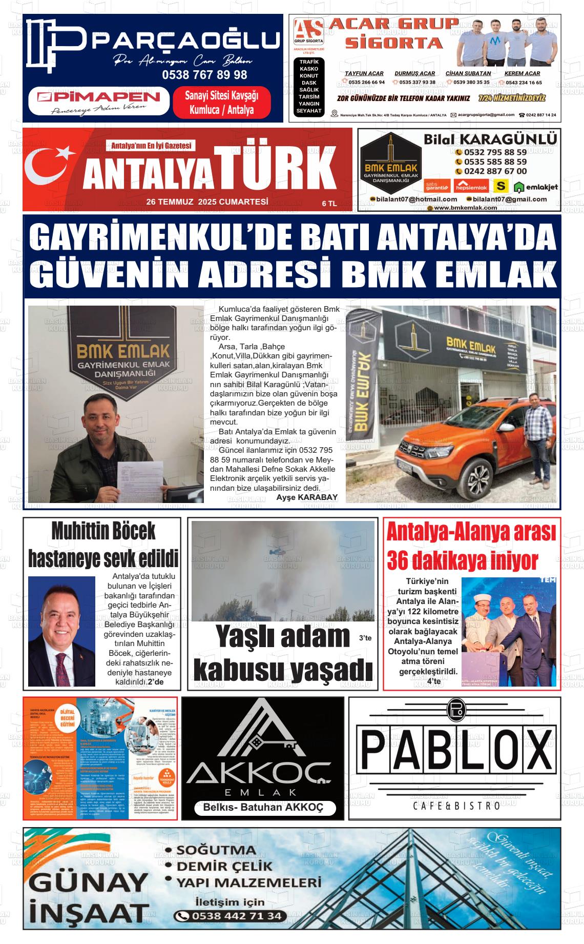 Antalya Yerel Gazeteleri 08 Aralık 2025, Pazartesi Günü Manşeti