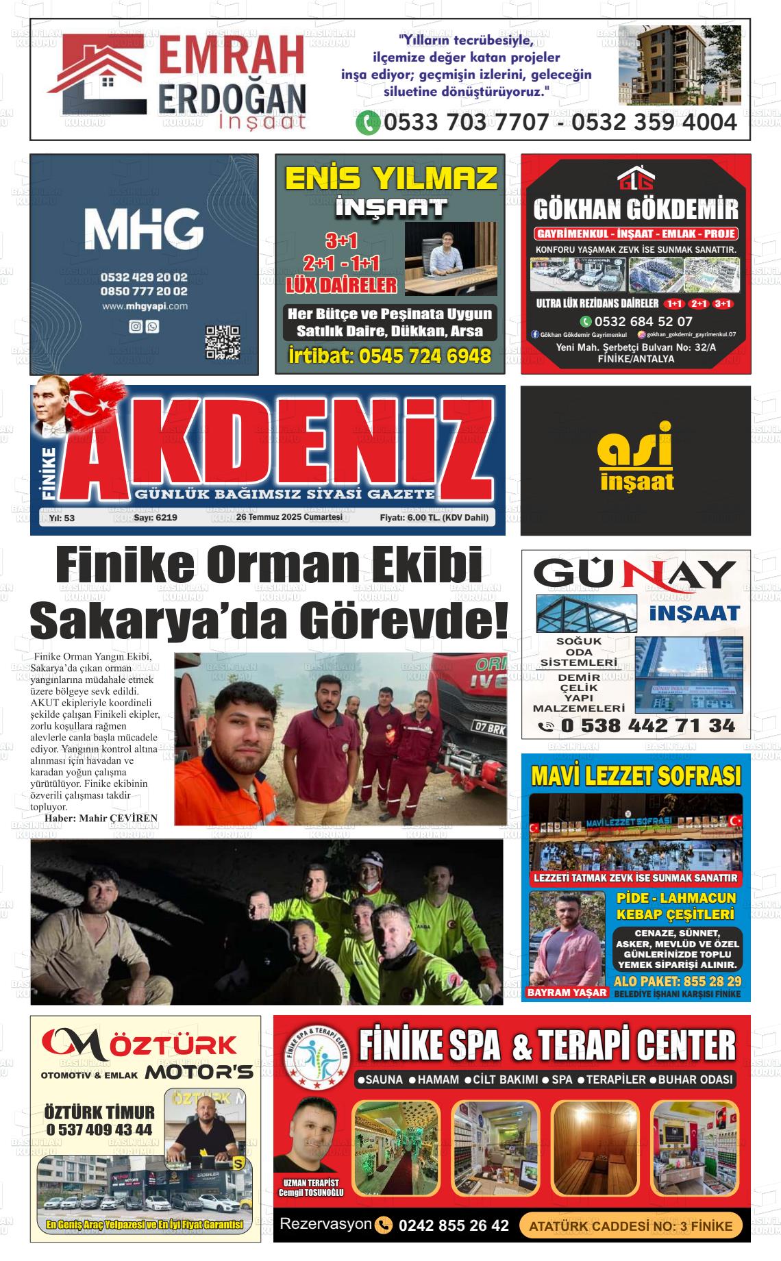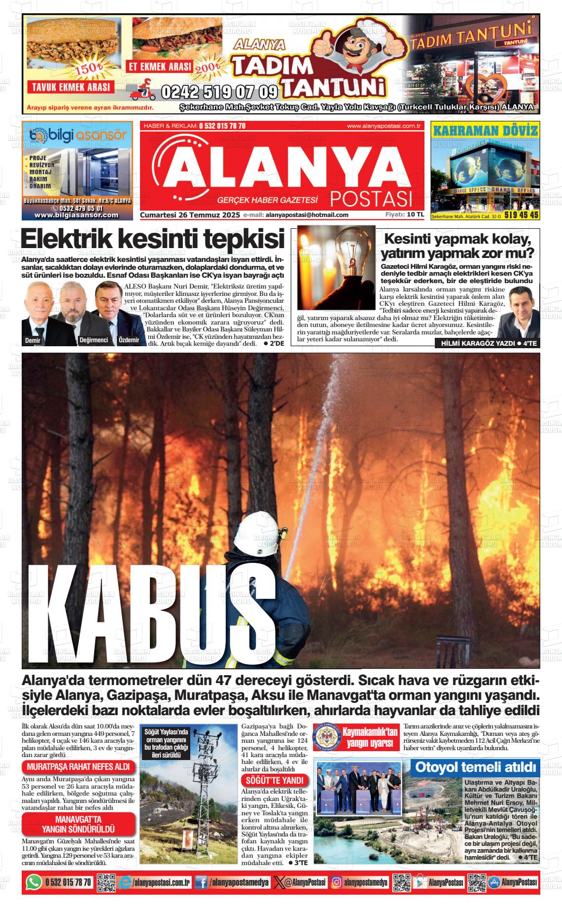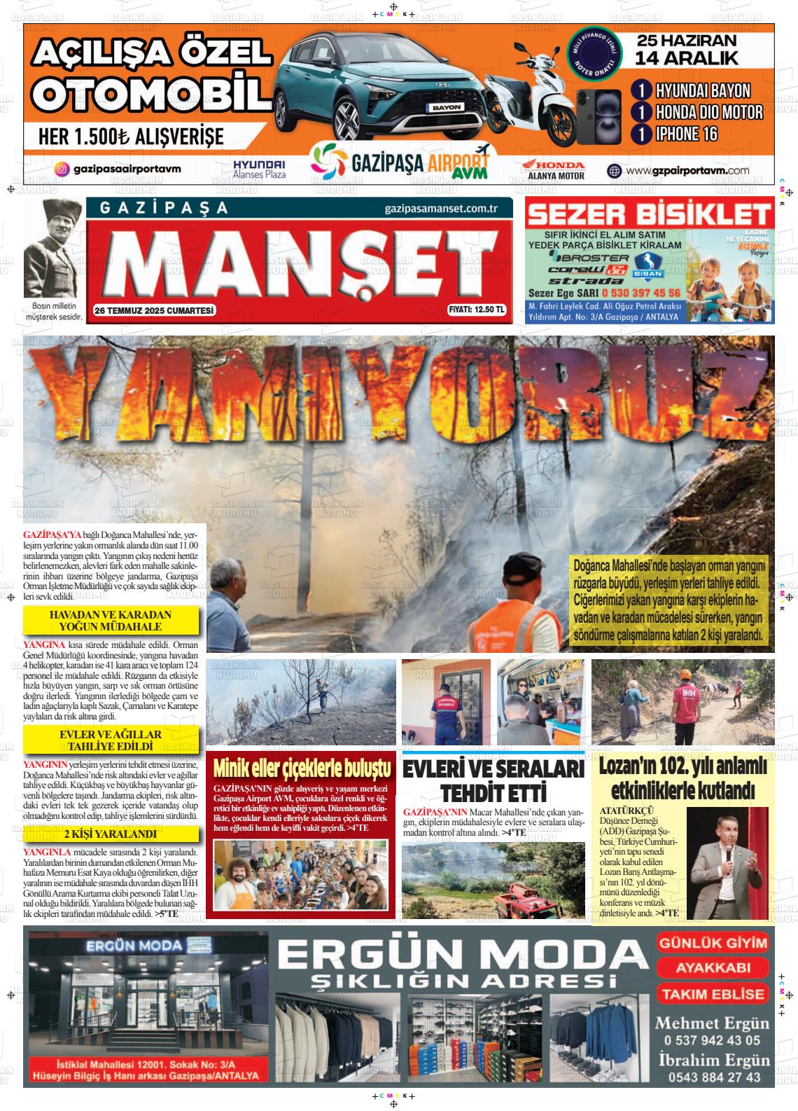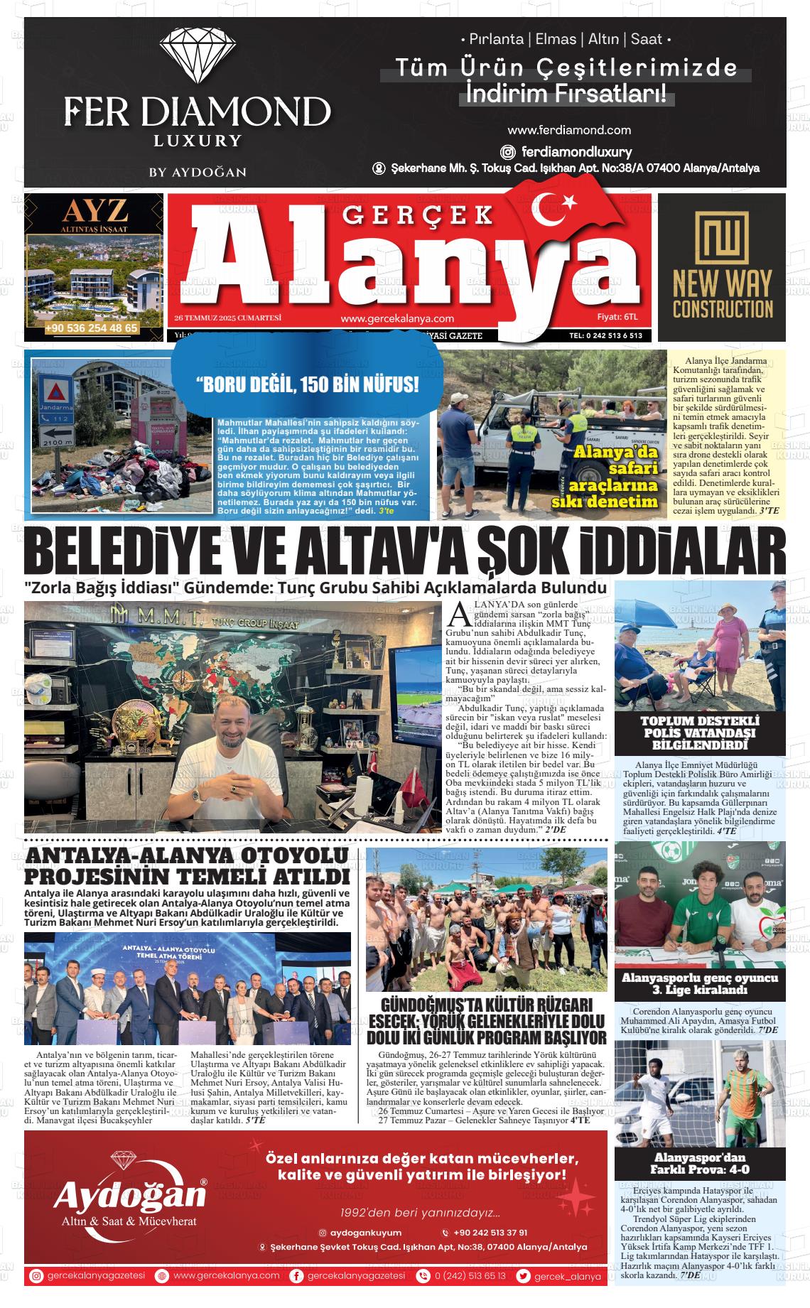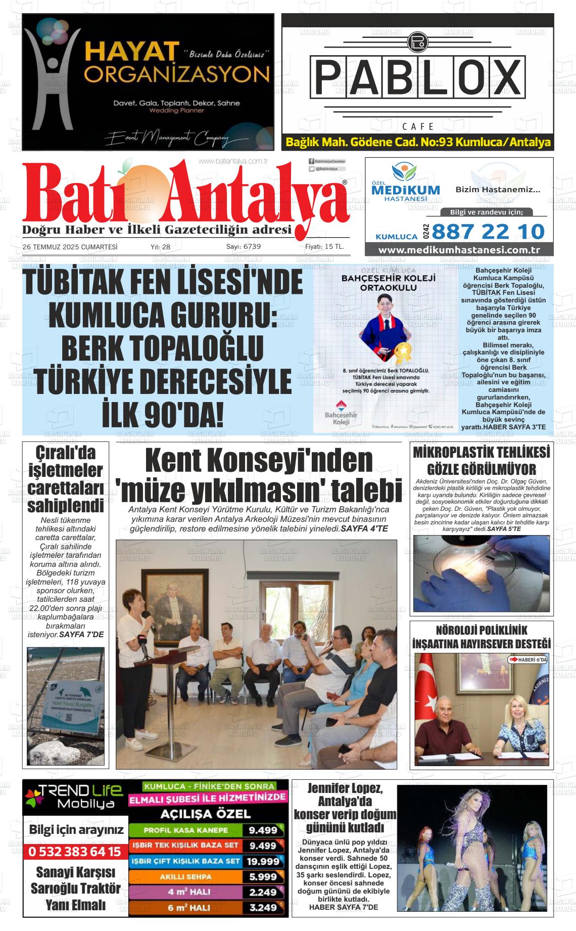 Antalya Yerel Gazeteleri 08 Aralık 2025, Pazartesi Günü Manşeti