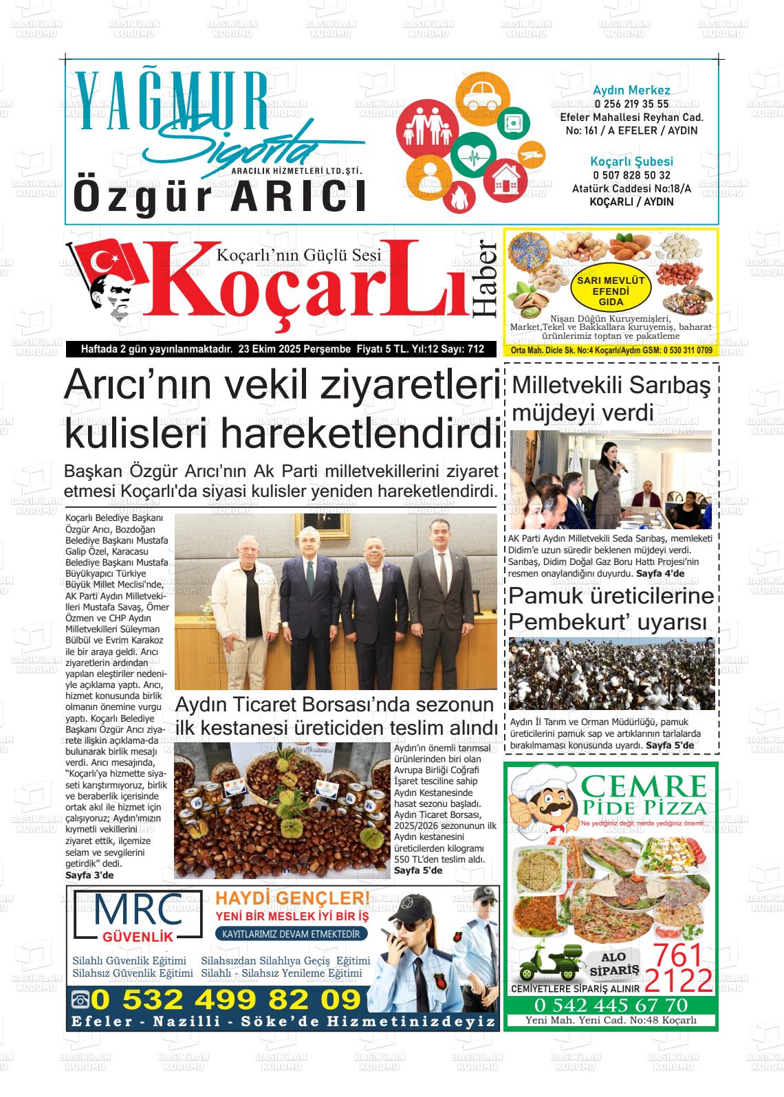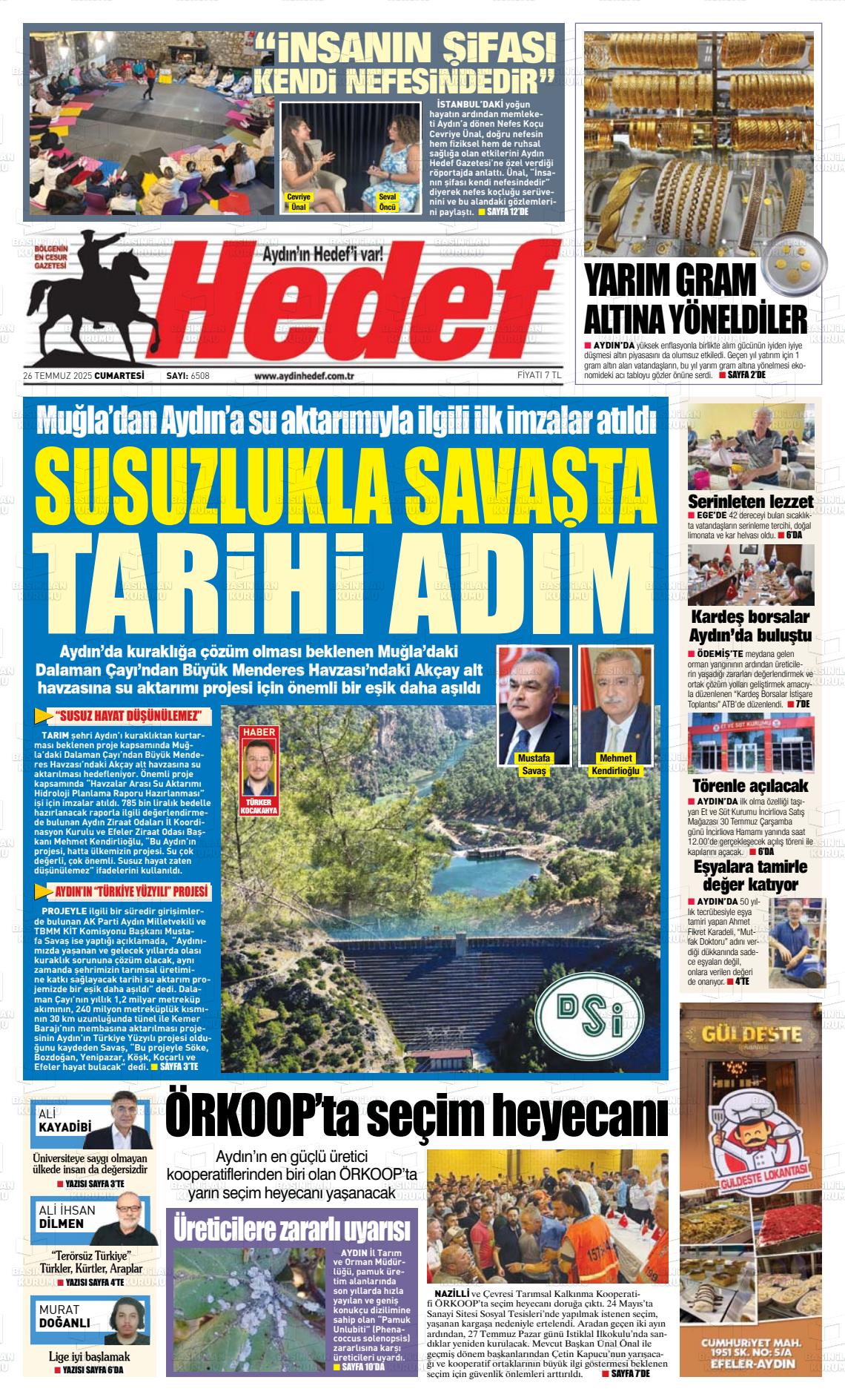 Aydın Yerel Gazeteleri 08 Aralık 2025, Pazartesi Günü Manşeti
