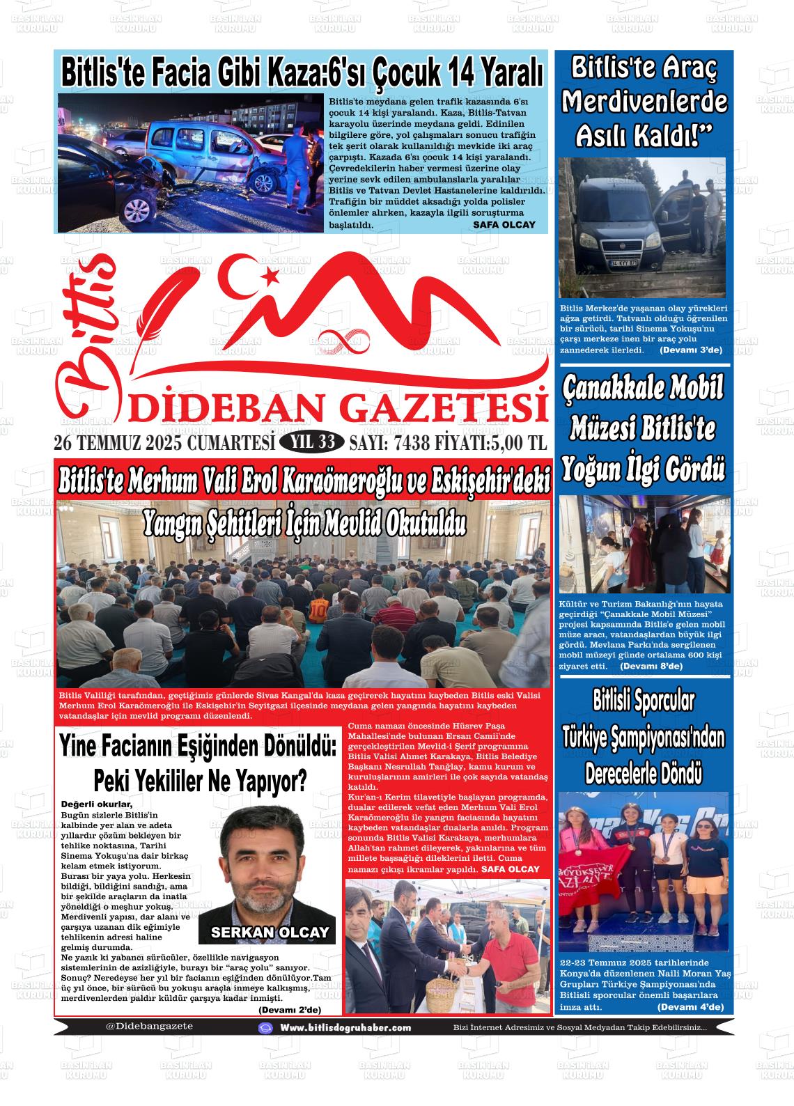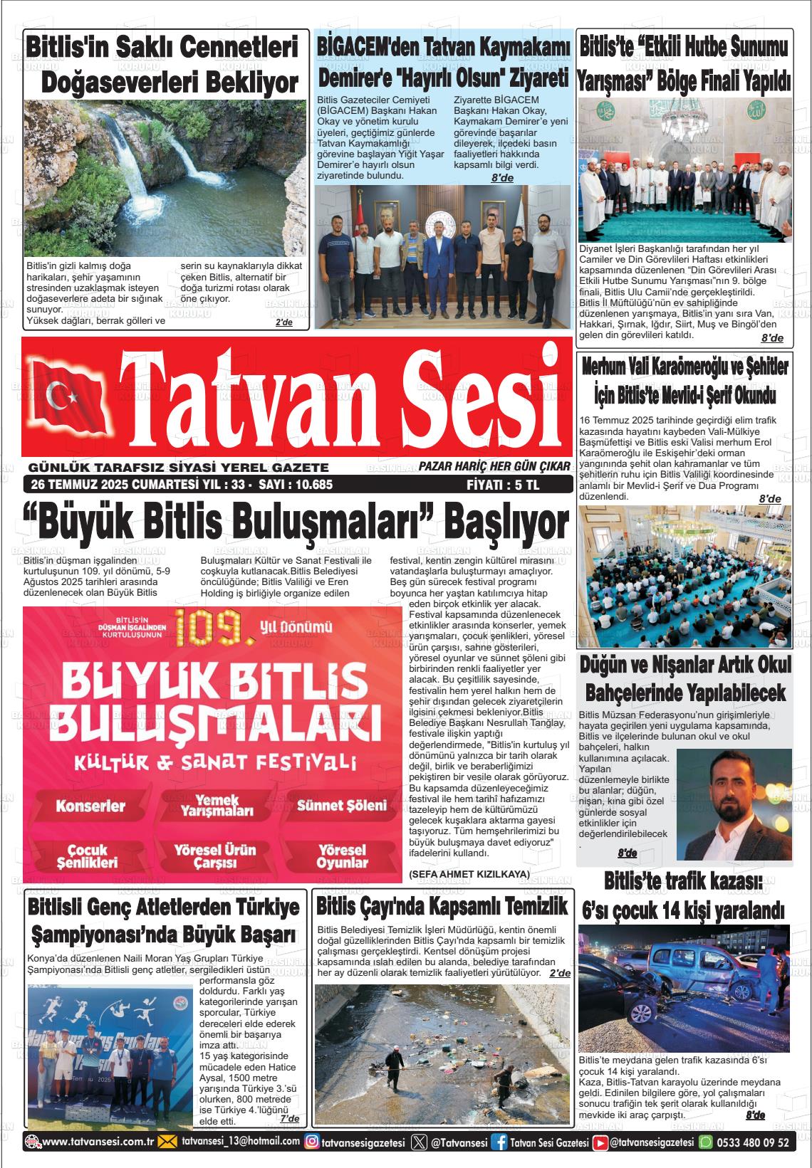 Bİtlİs Yerel Gazeteleri 08 Aralık 2025, Pazartesi Günü Manşeti