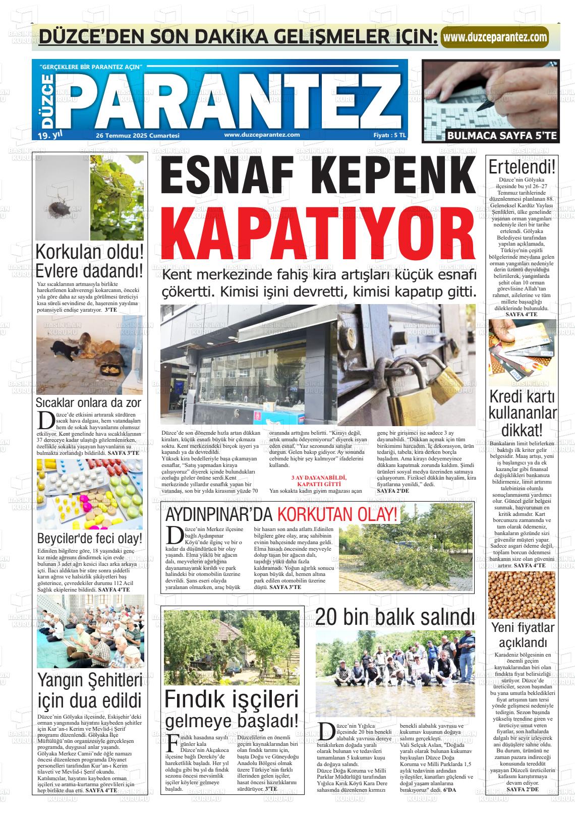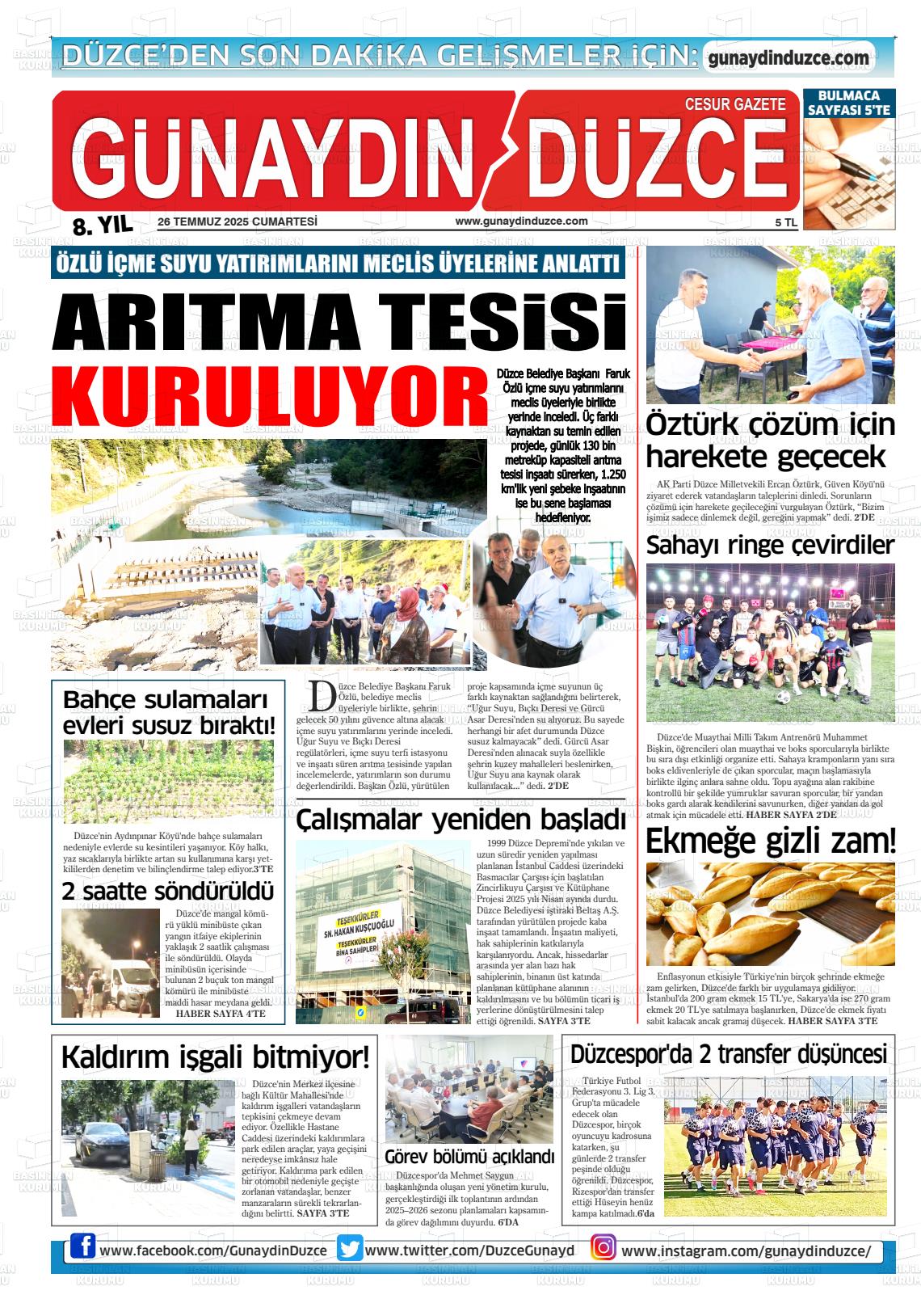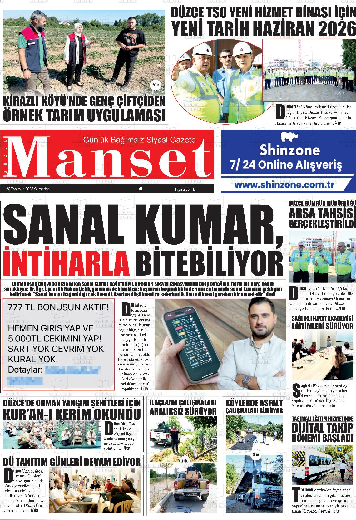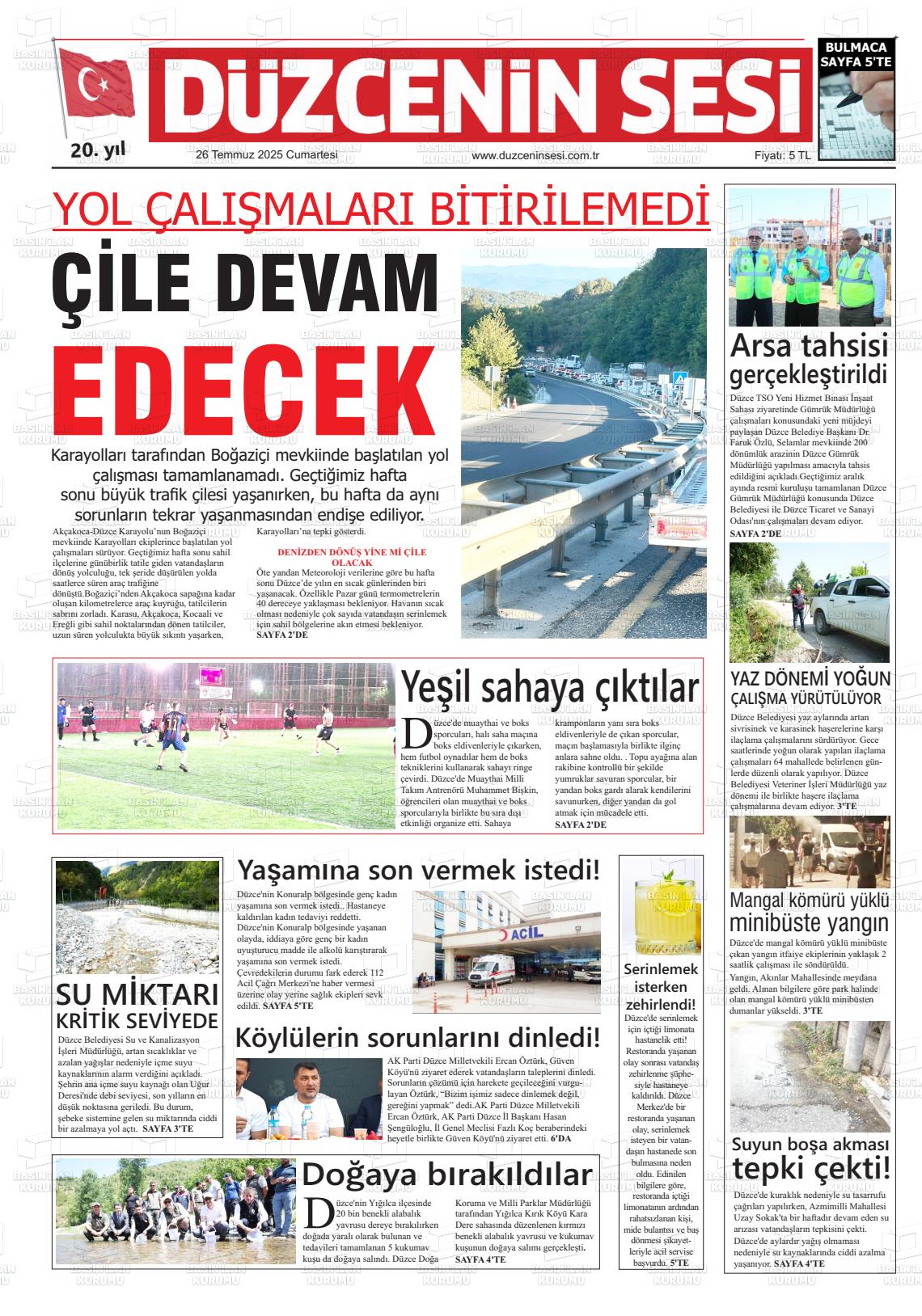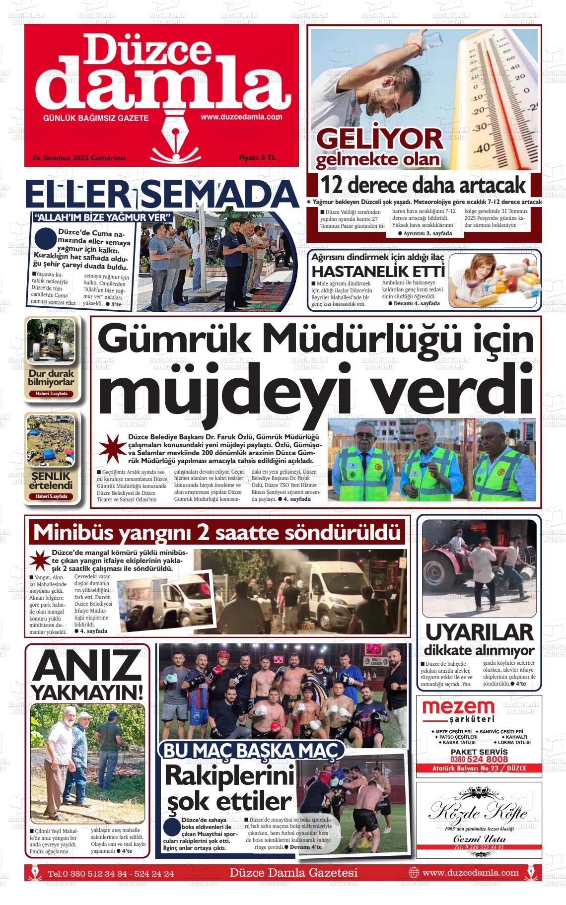 Düzce Yerel Gazeteleri 08 Aralık 2025, Pazartesi Günü Manşeti