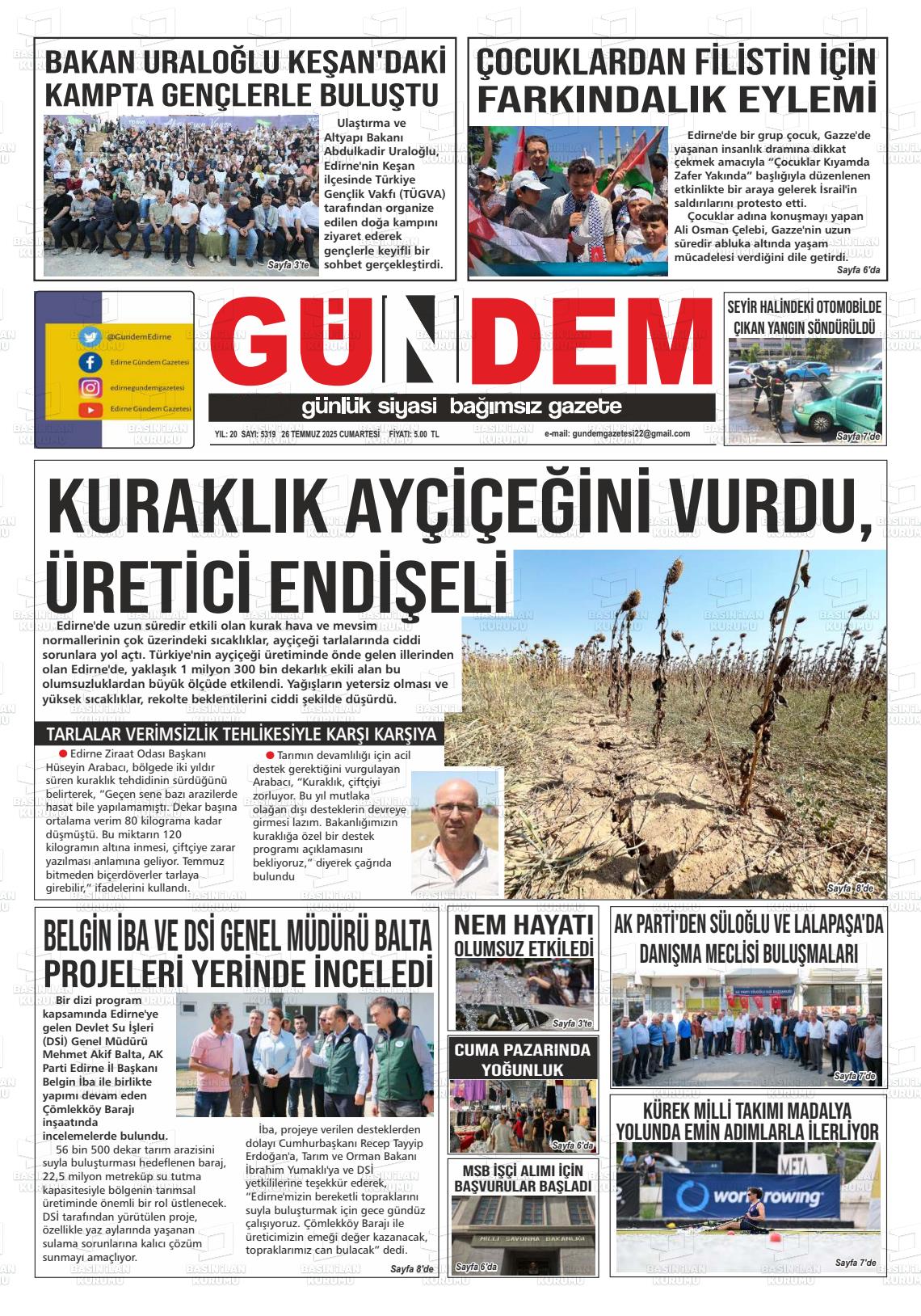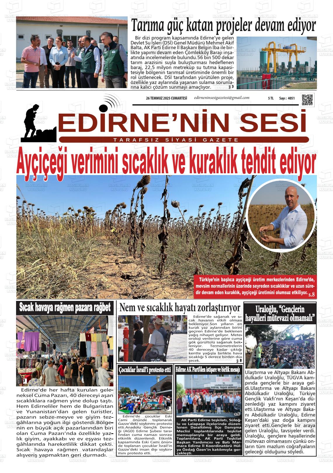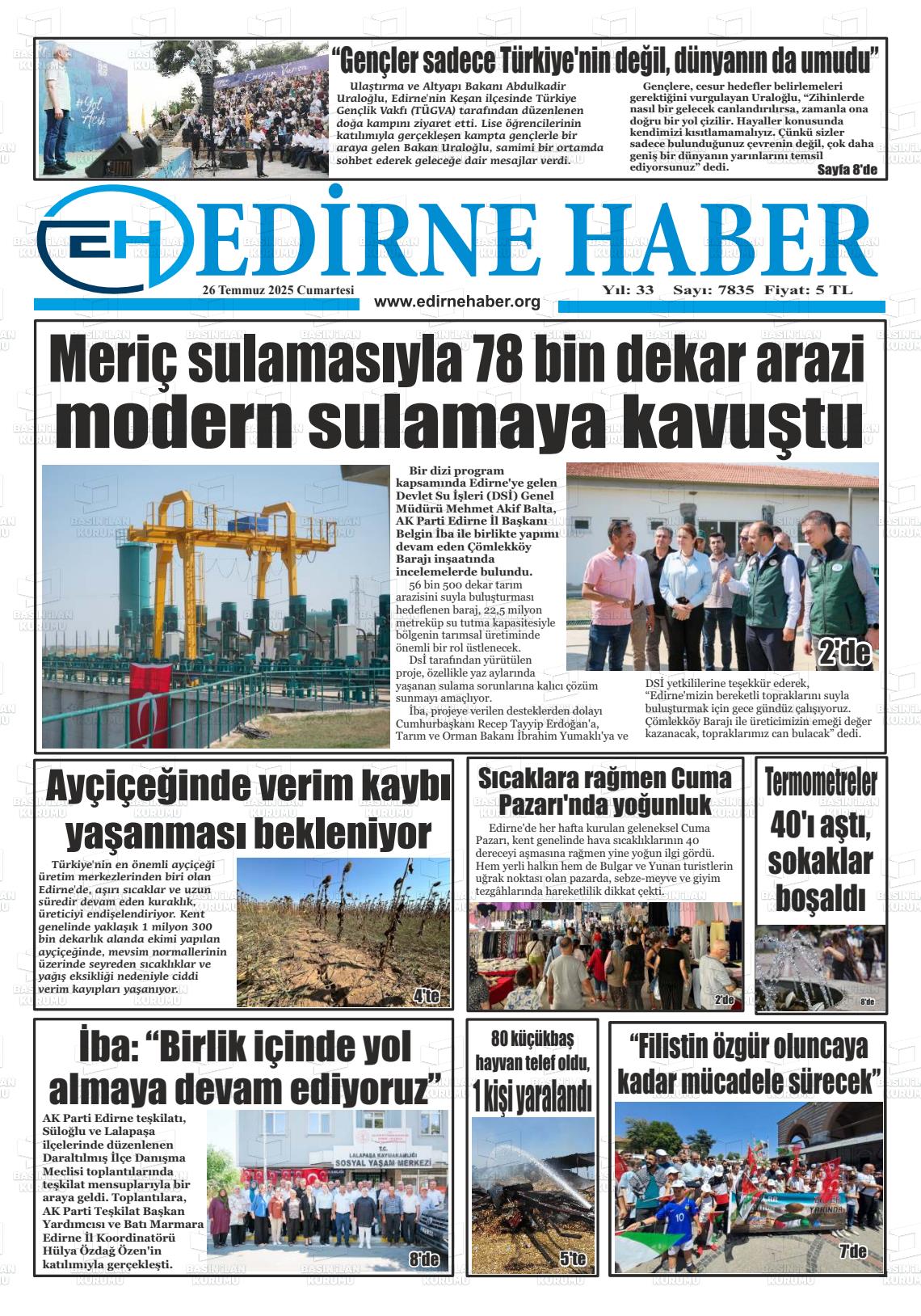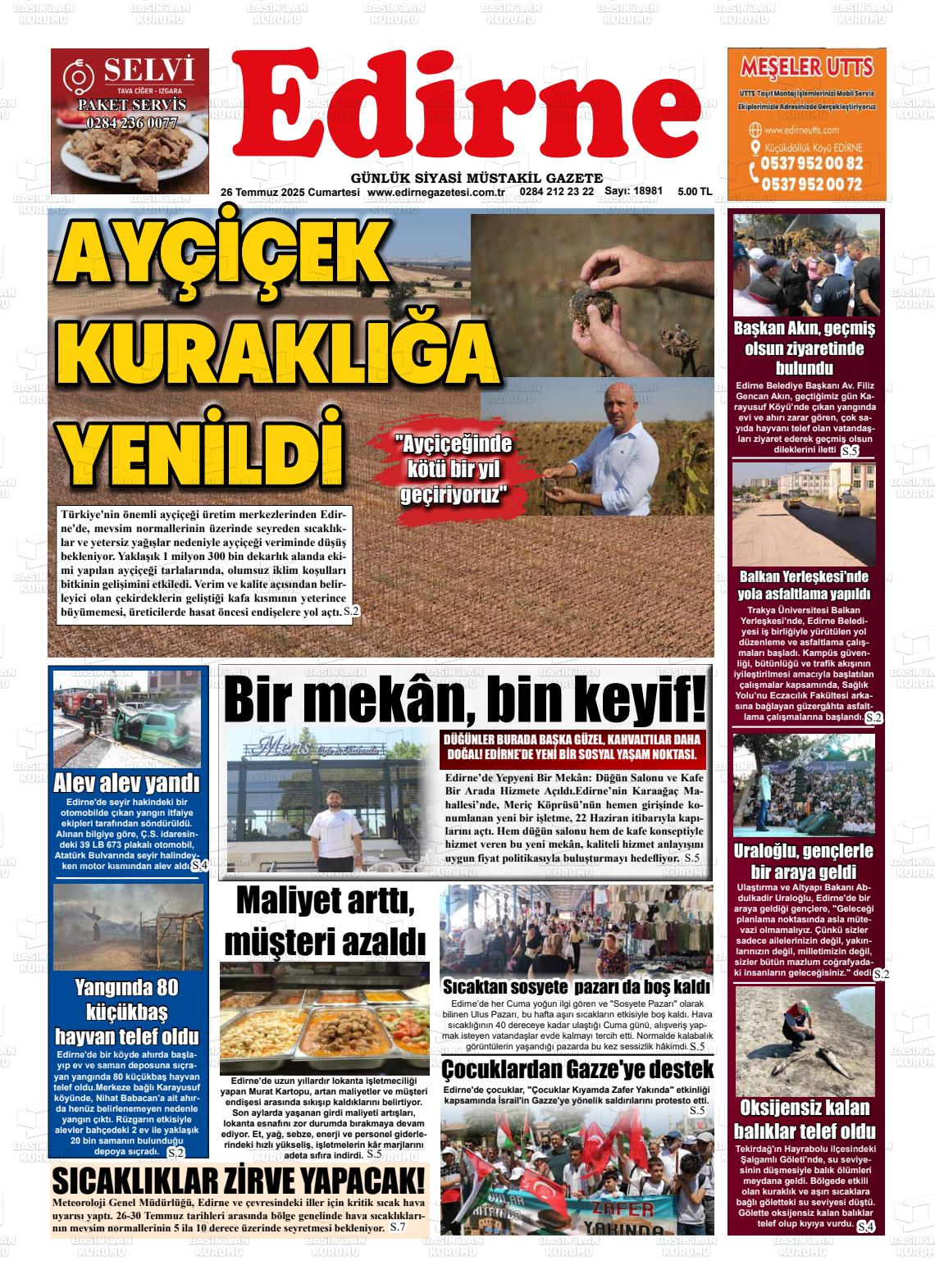 Edİrne Yerel Gazeteleri 08 Aralık 2025, Pazartesi Günü Manşeti