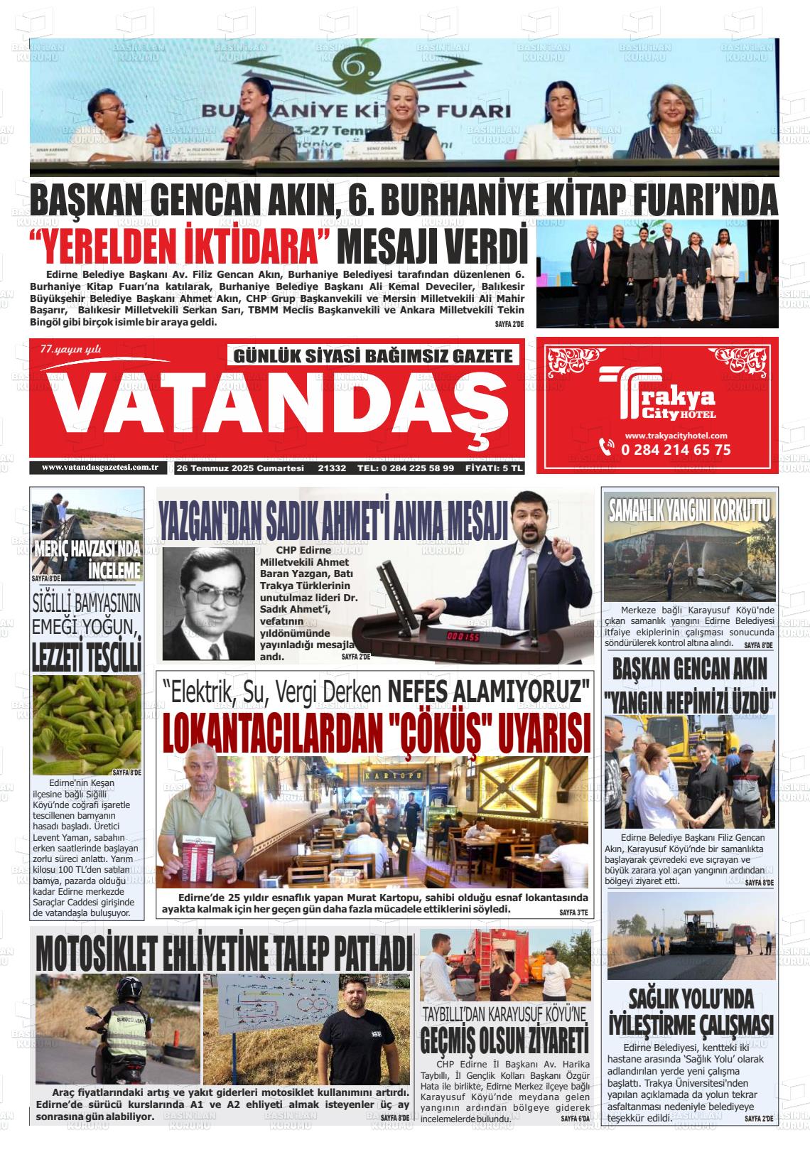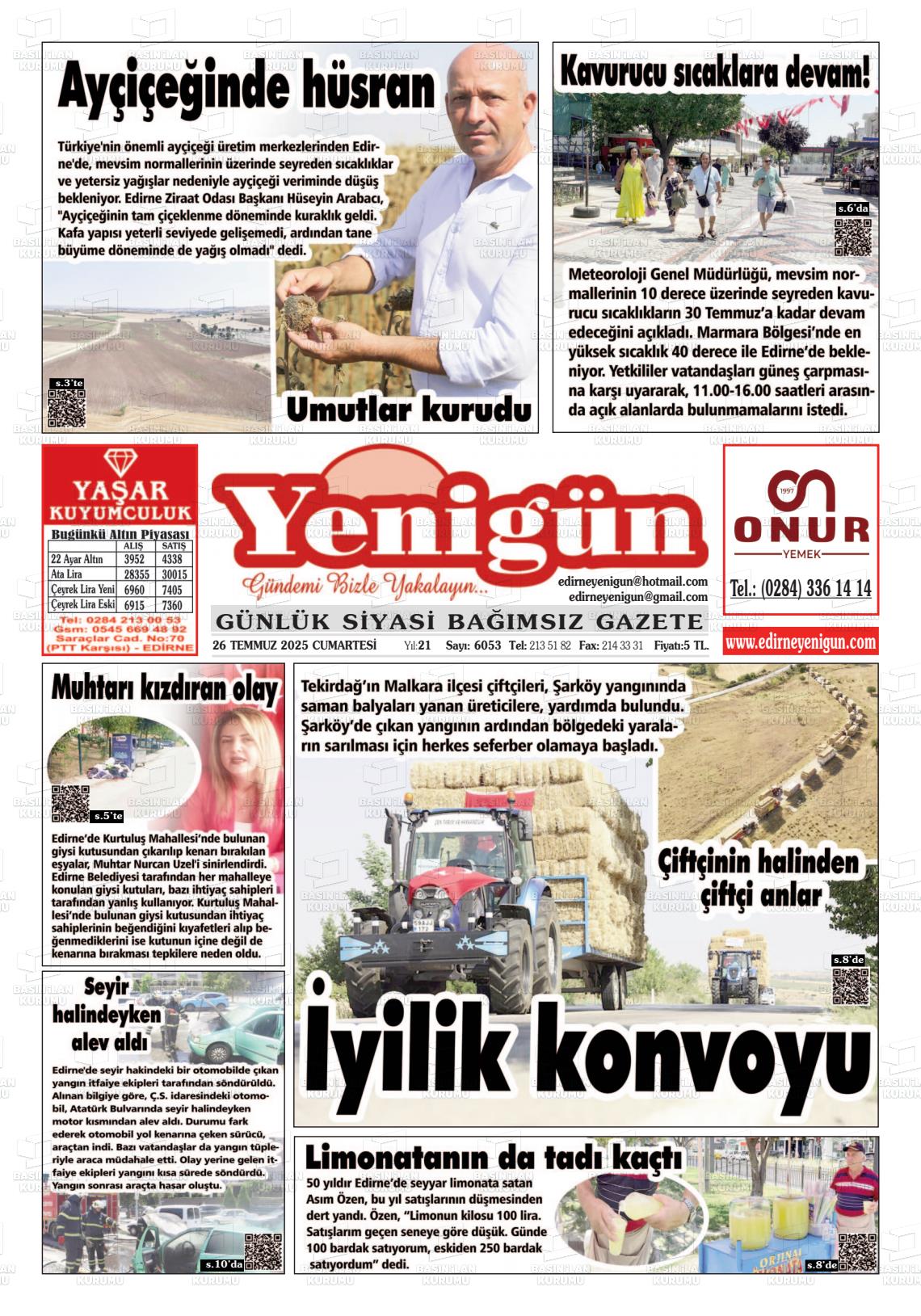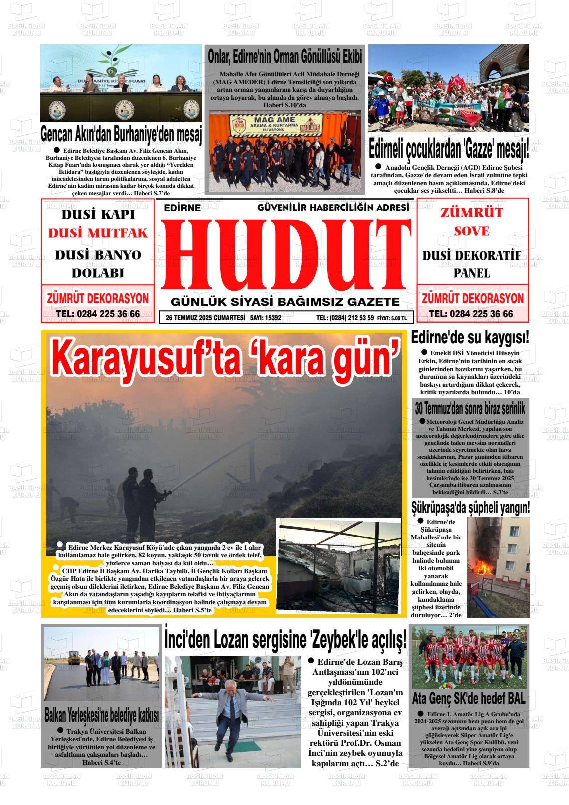 Edİrne Yerel Gazeteleri 08 Aralık 2025, Pazartesi Günü Manşeti