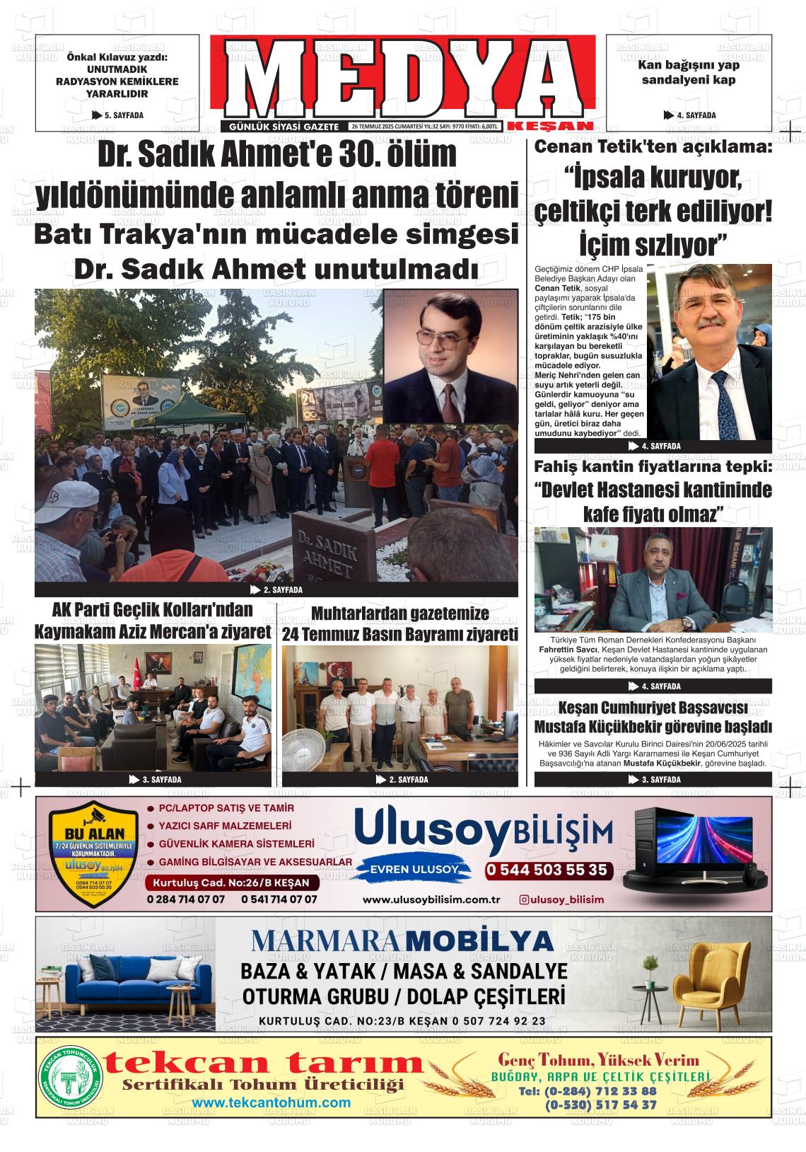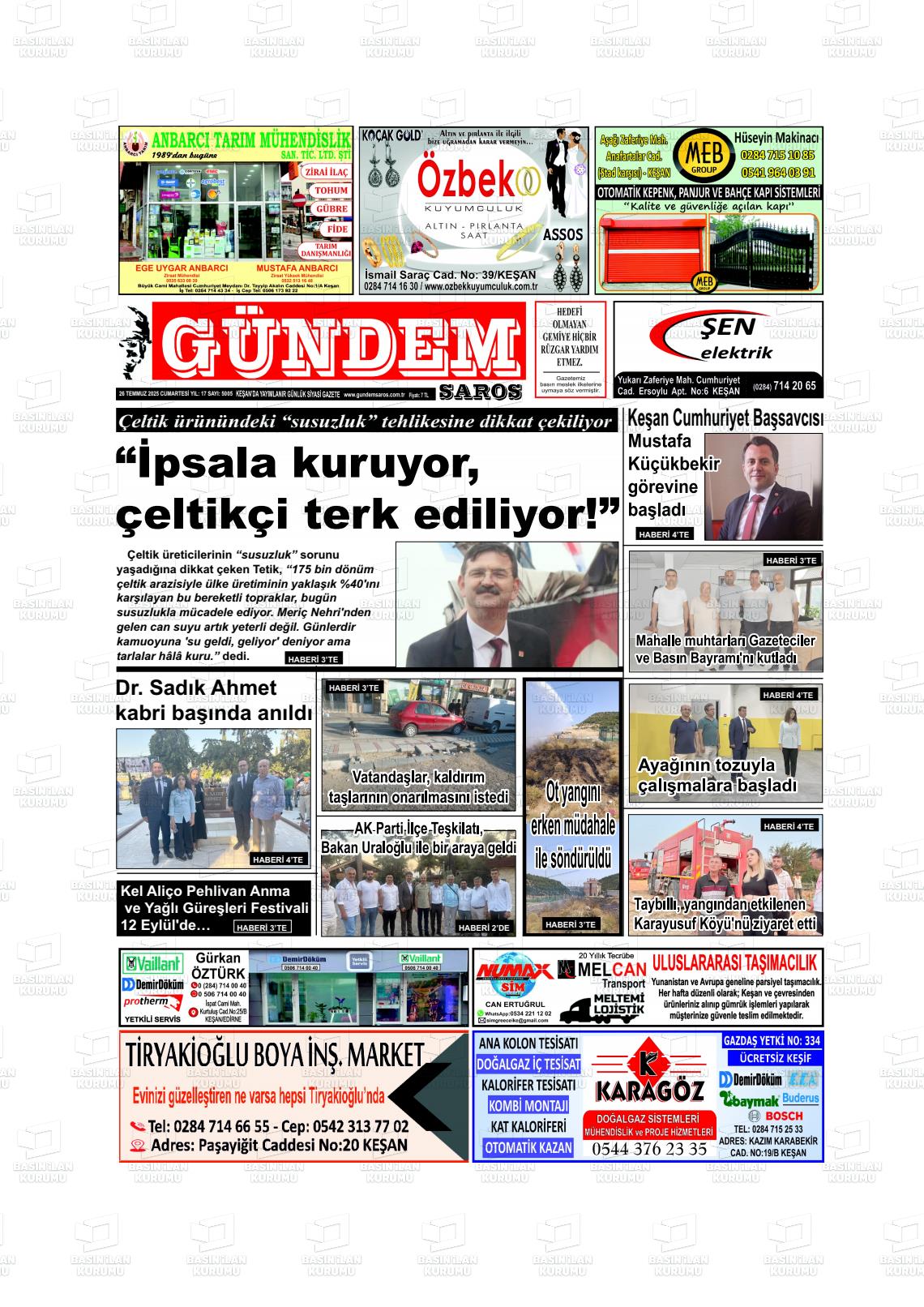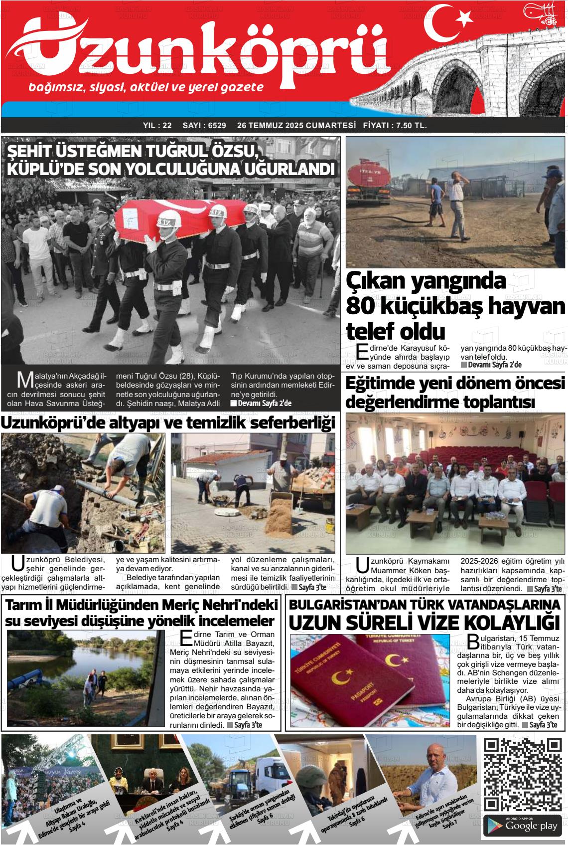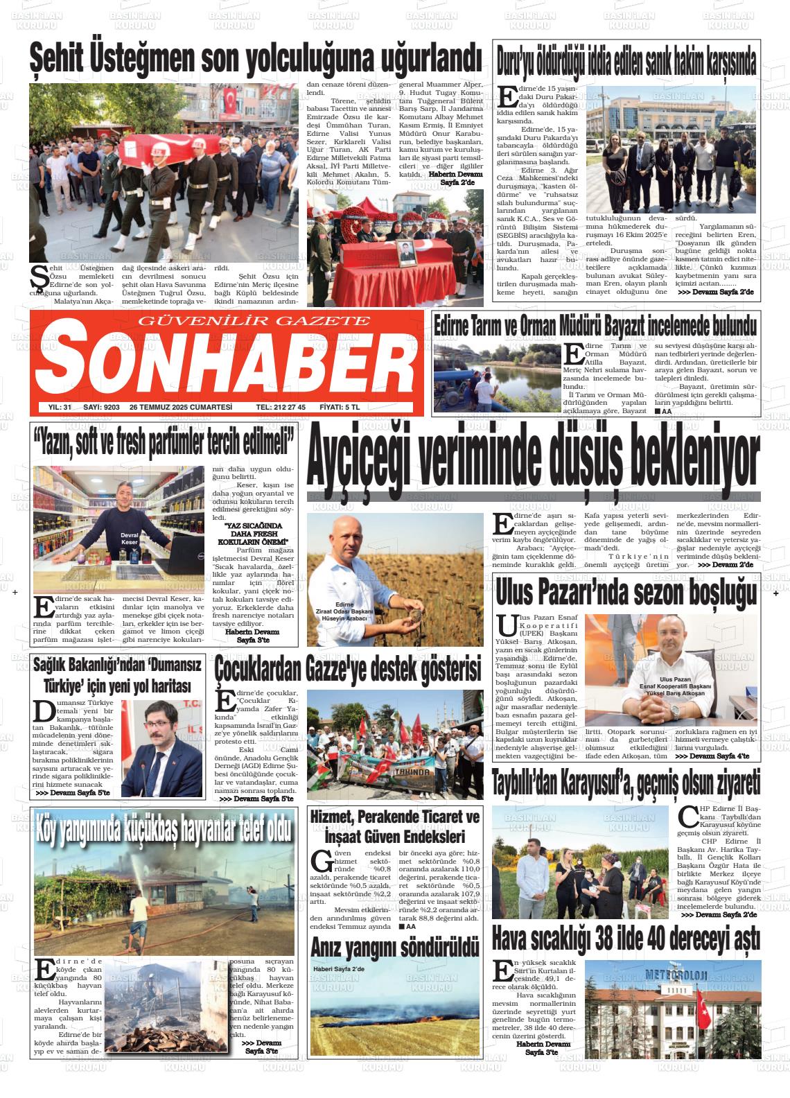 Edİrne Yerel Gazeteleri 08 Aralık 2025, Pazartesi Günü Manşeti