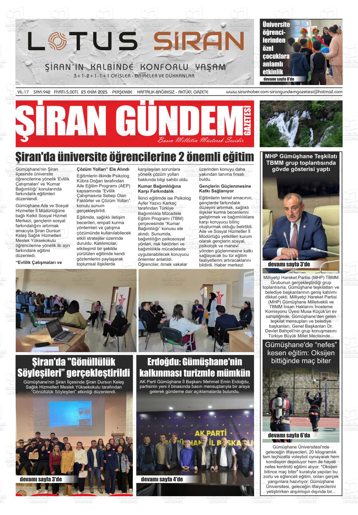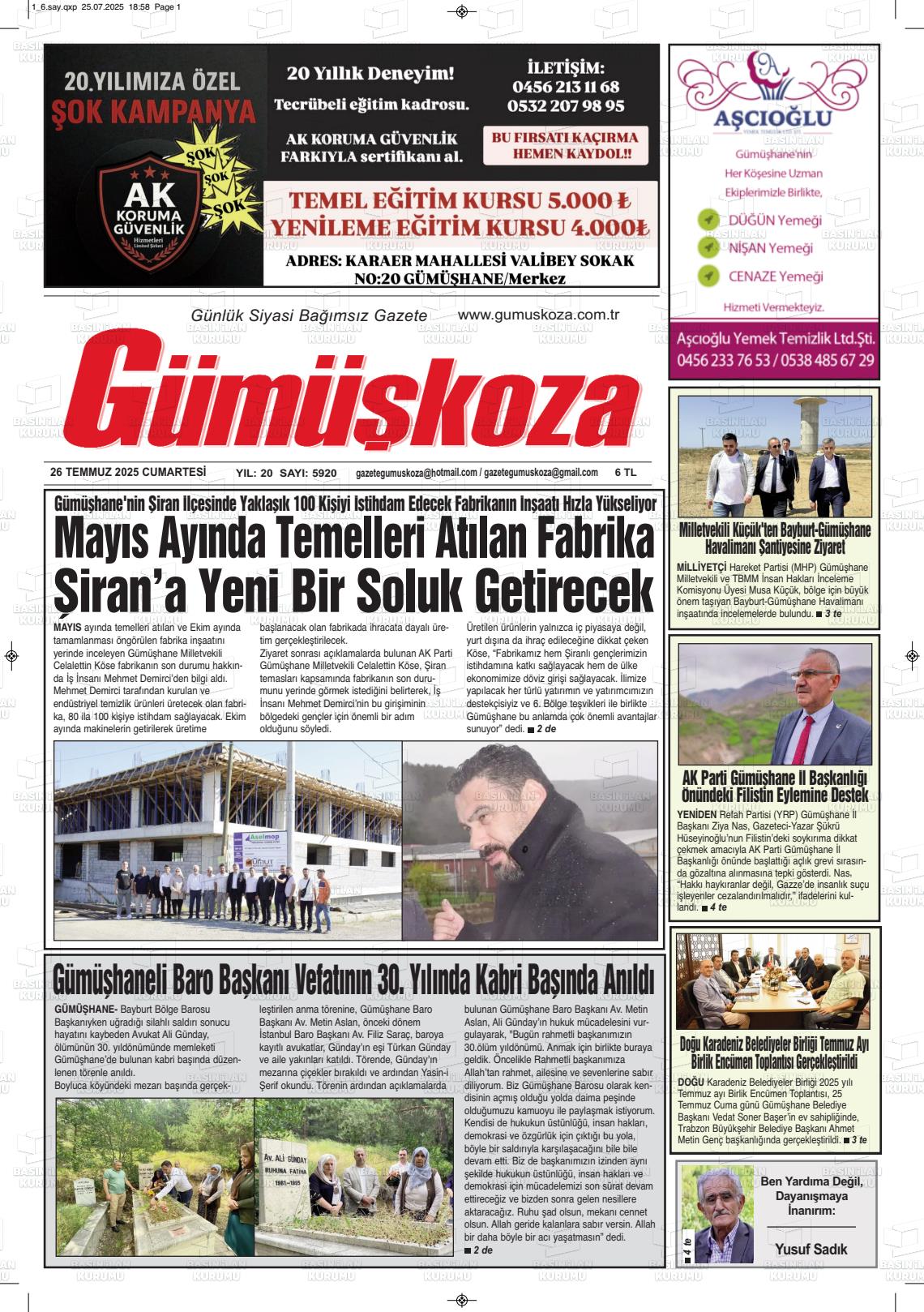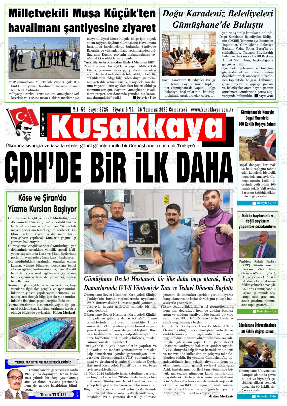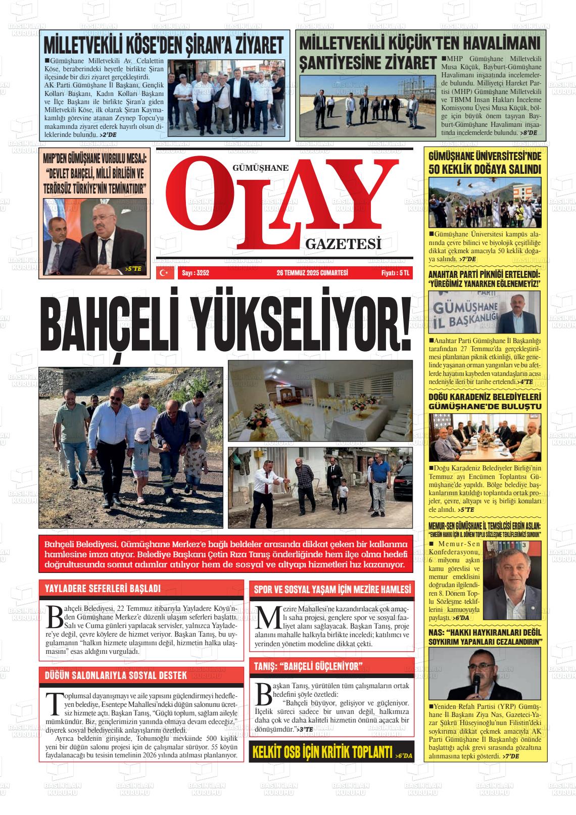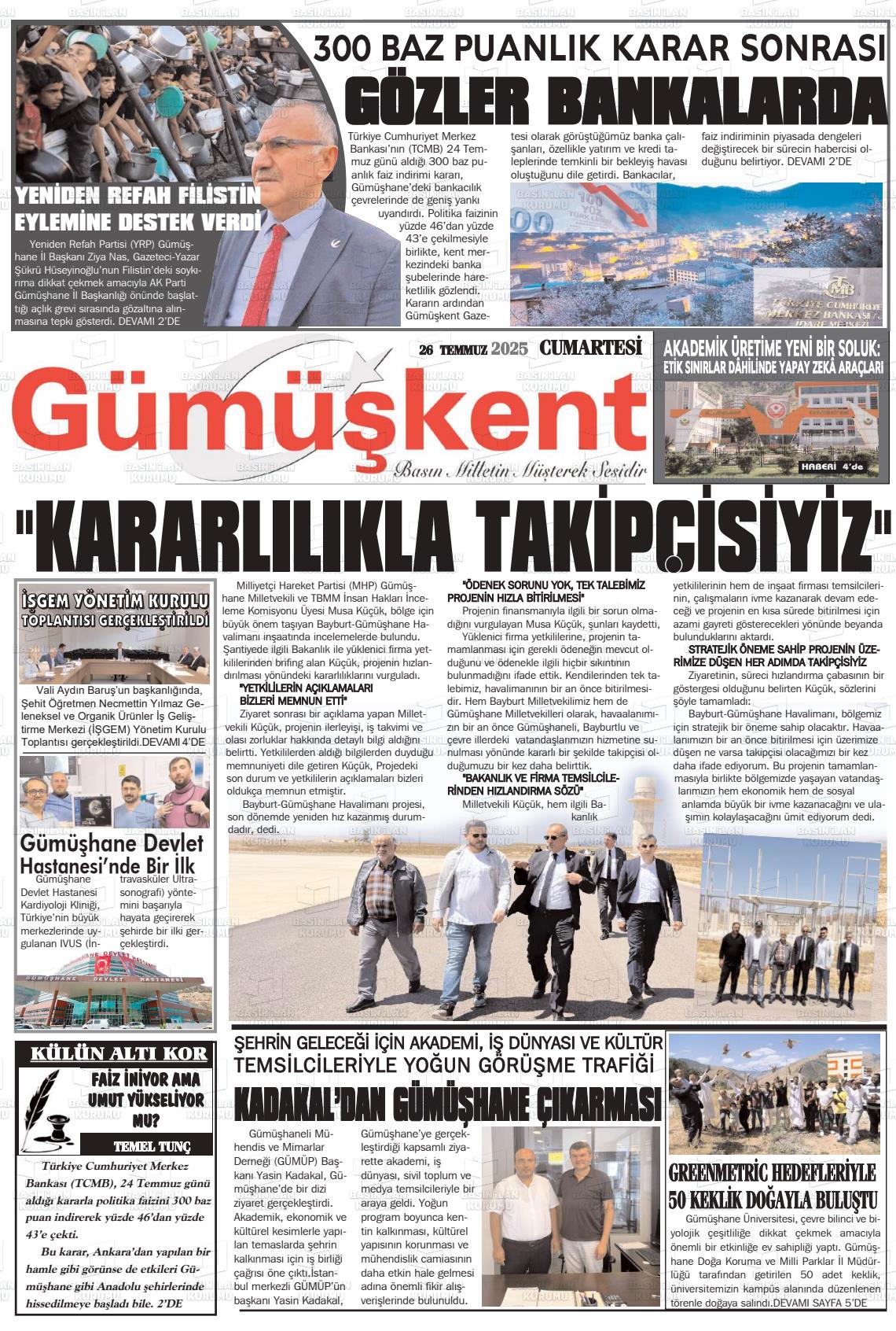 Gümüşhane Yerel Gazeteleri 10 Aralık 2025, Çarşamba Günü Manşeti