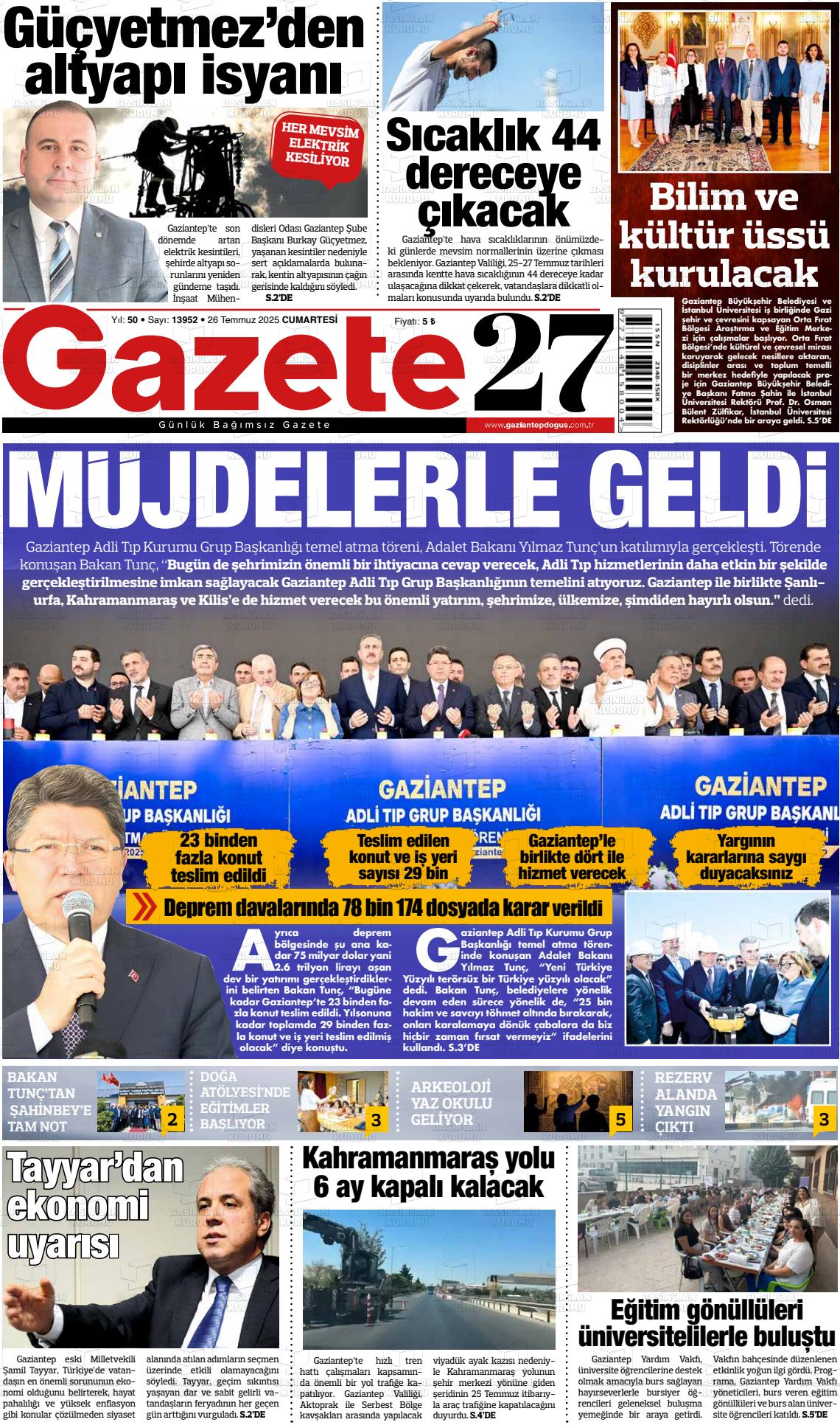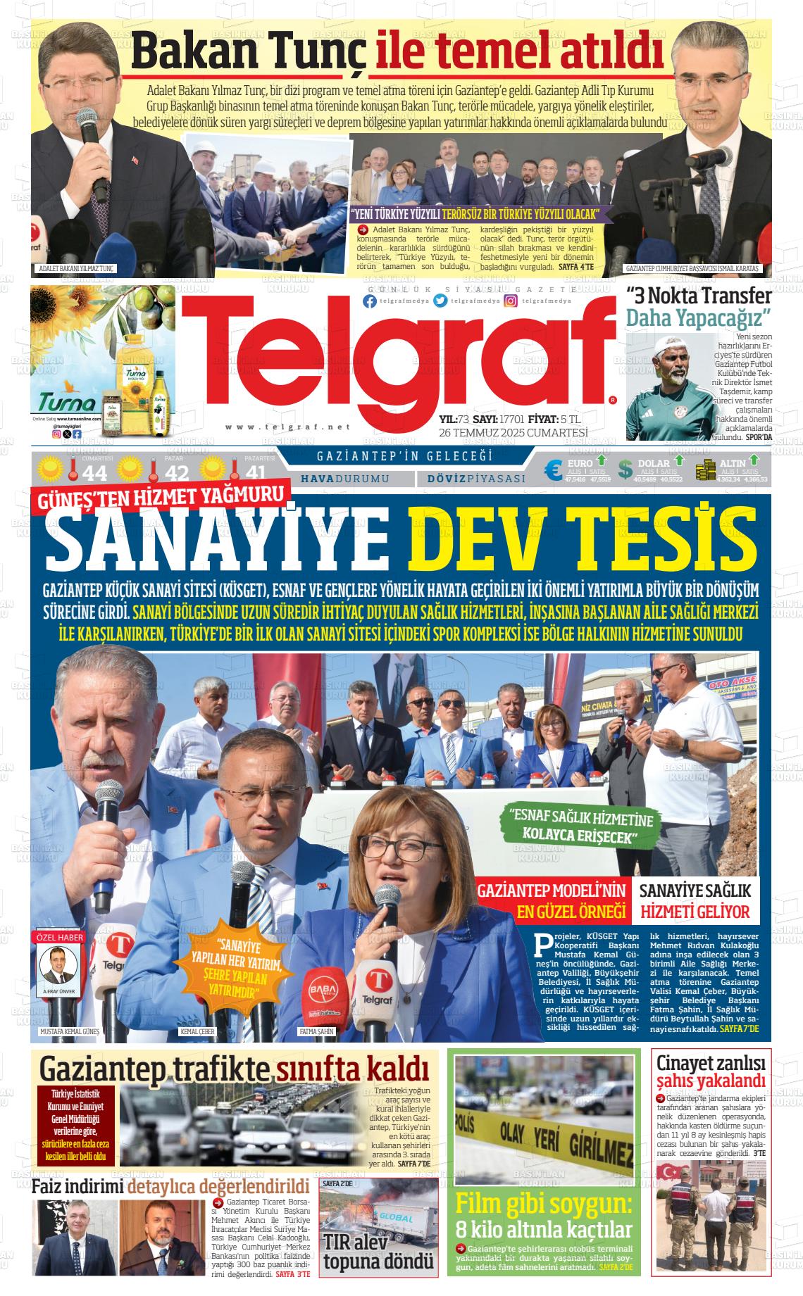 Gazİantep Yerel Gazeteleri 10 Aralık 2025, Çarşamba Günü Manşeti