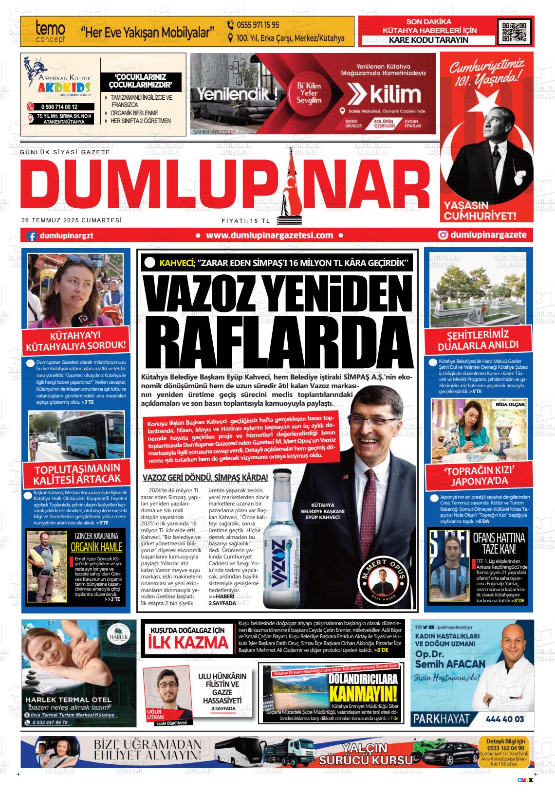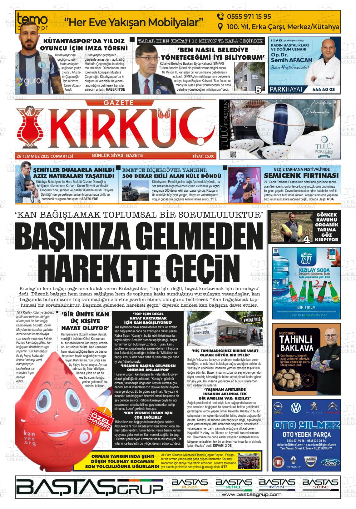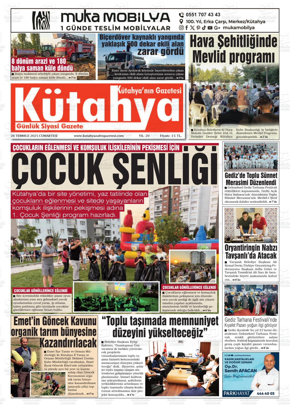Kütahya Yerel Gazeteleri 08 Aralık 2025, Pazartesi Günü Manşeti