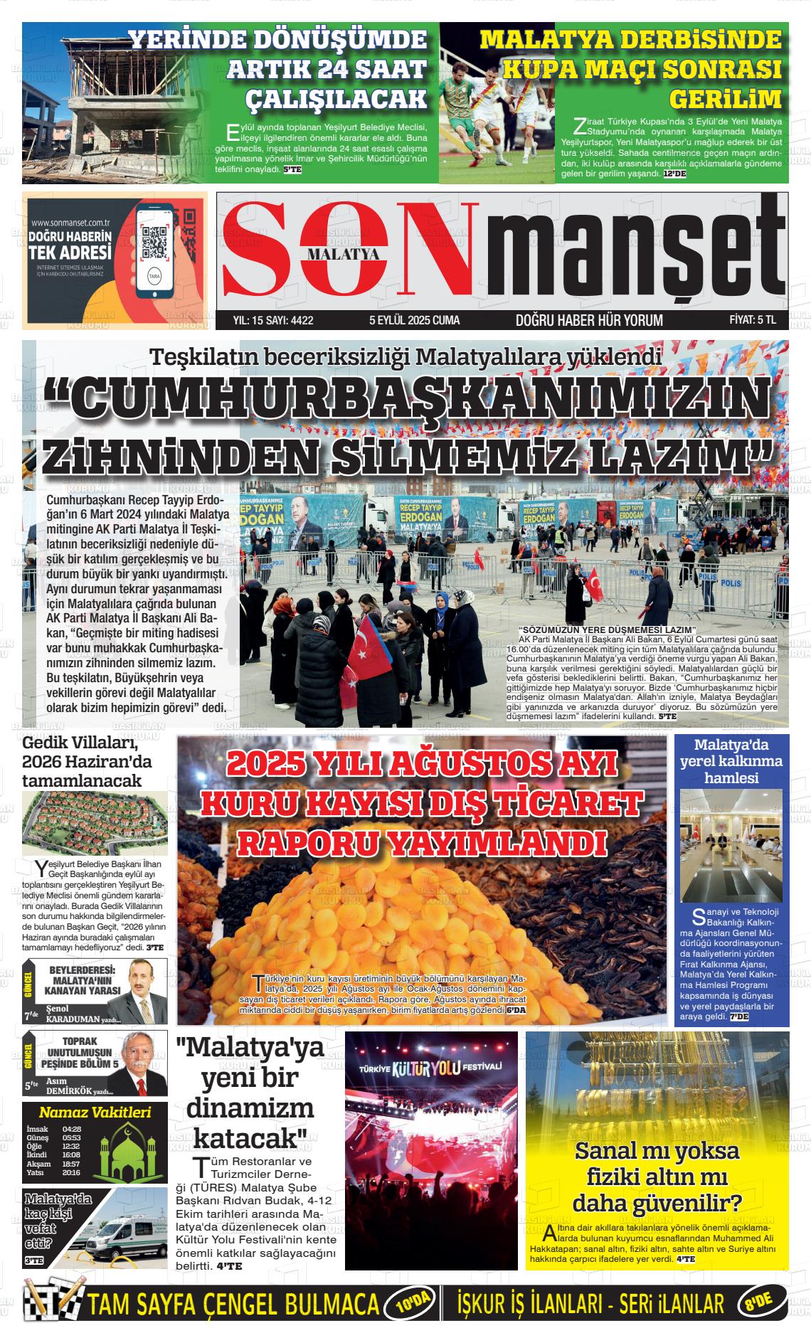 Malatya Yerel Gazeteleri 09 Aralık 2025, Salı Günü Manşeti