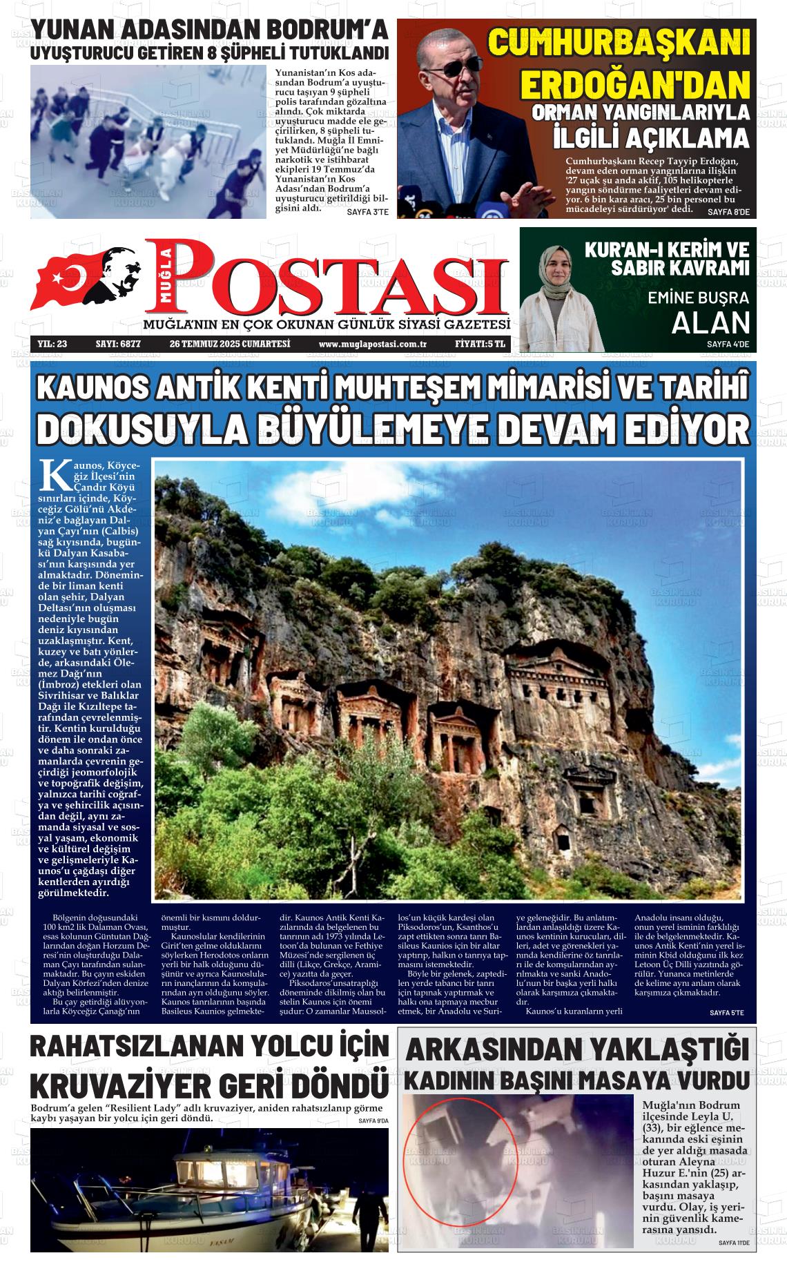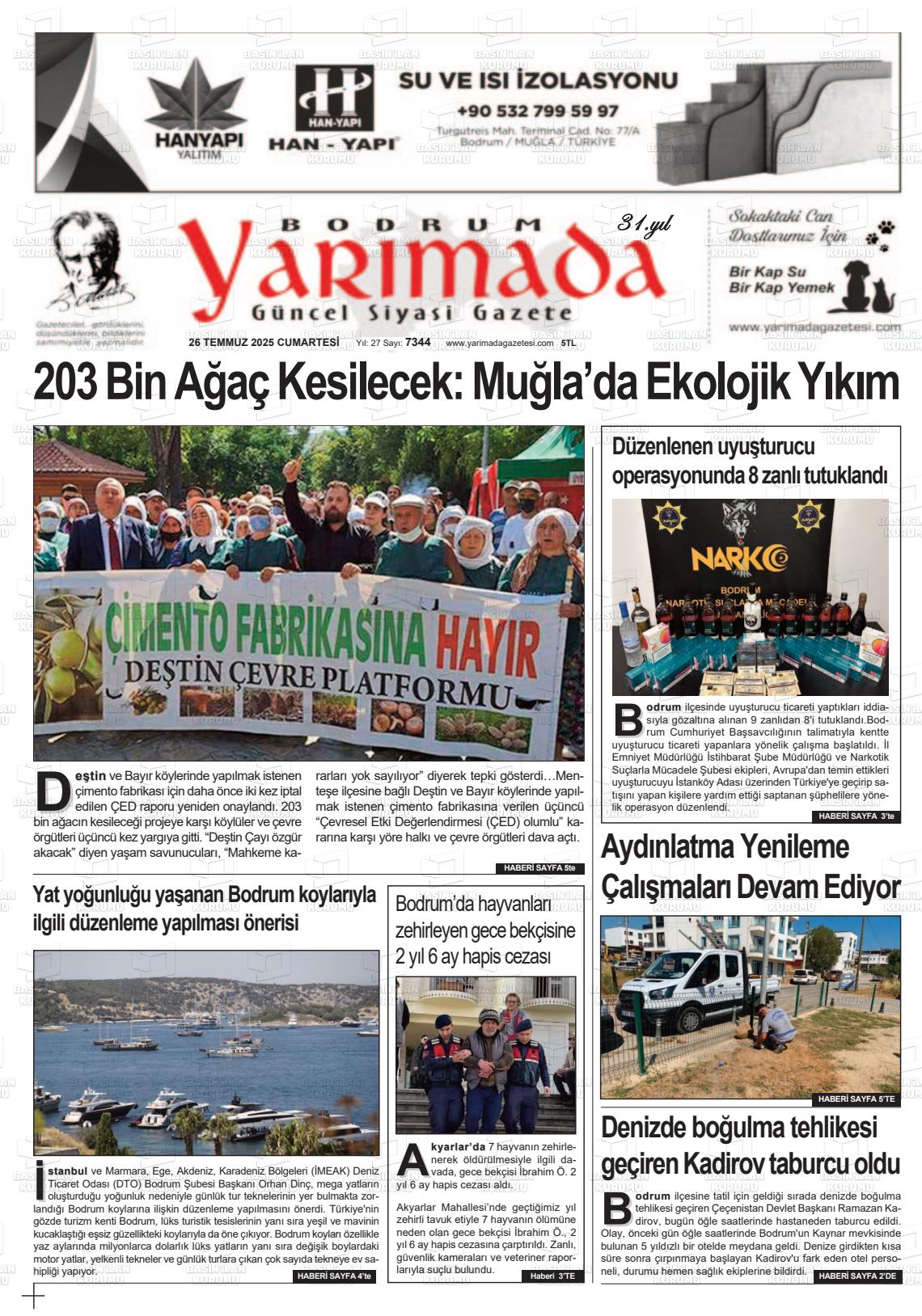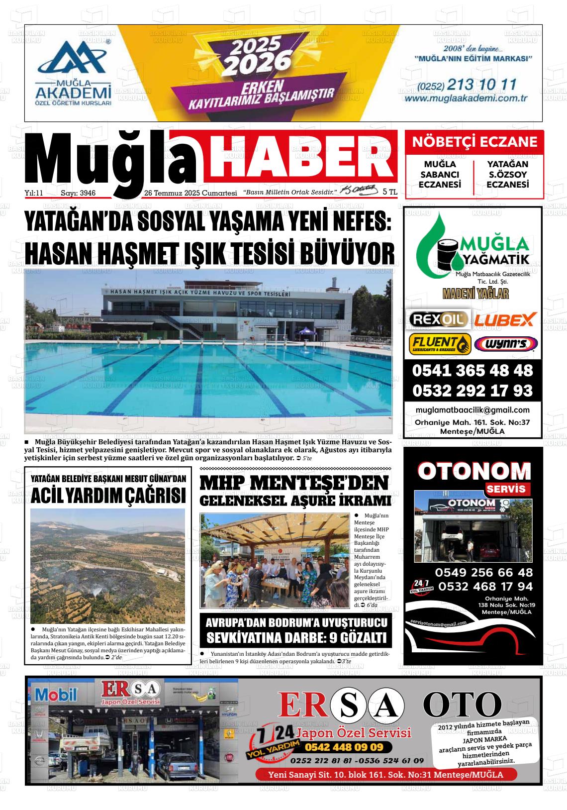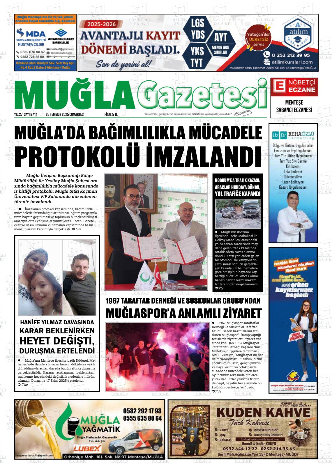 Muğla Yerel Gazeteleri 08 Aralık 2025, Pazartesi Günü Manşeti