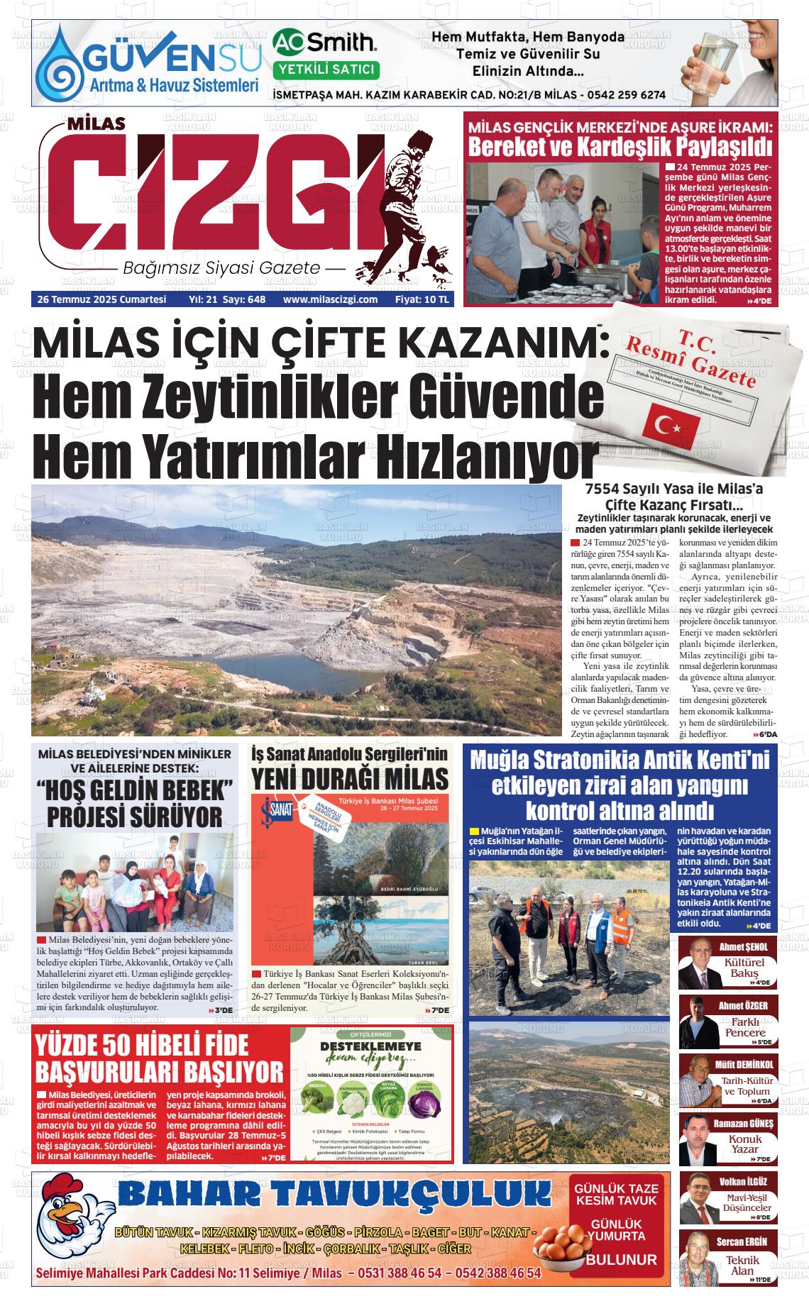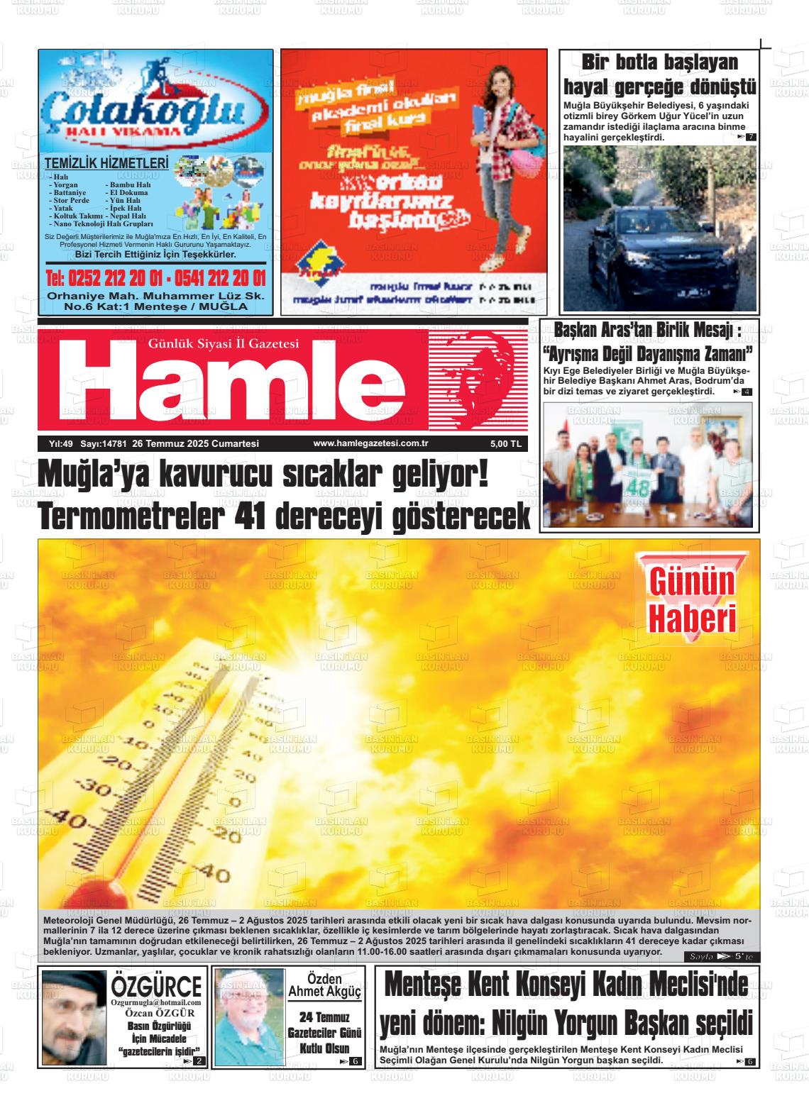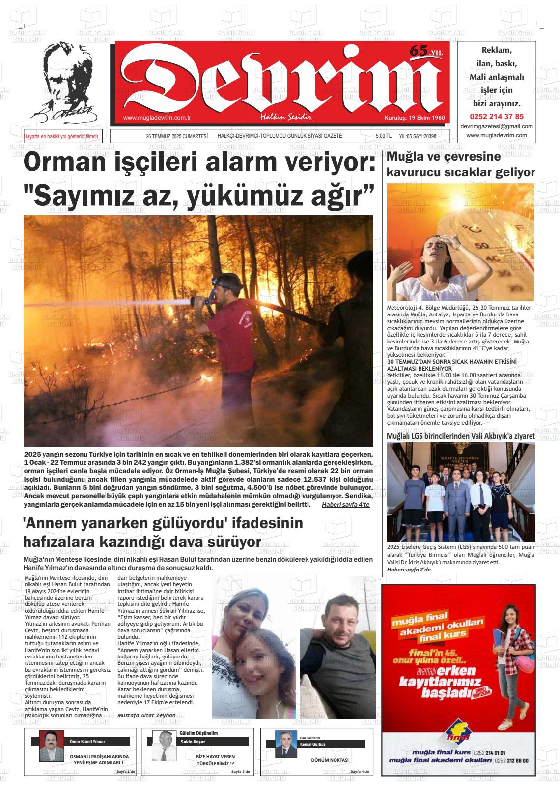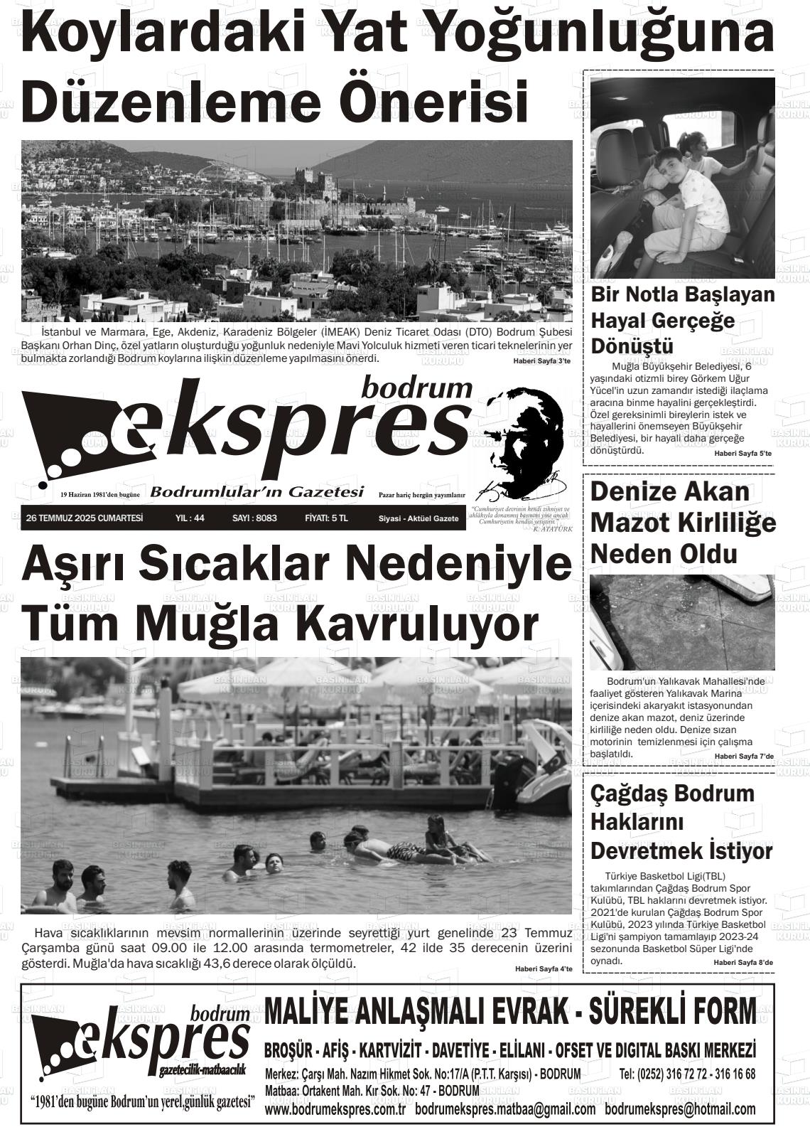Muğla Yerel Gazeteleri 08 Aralık 2025, Pazartesi Günü Manşeti
