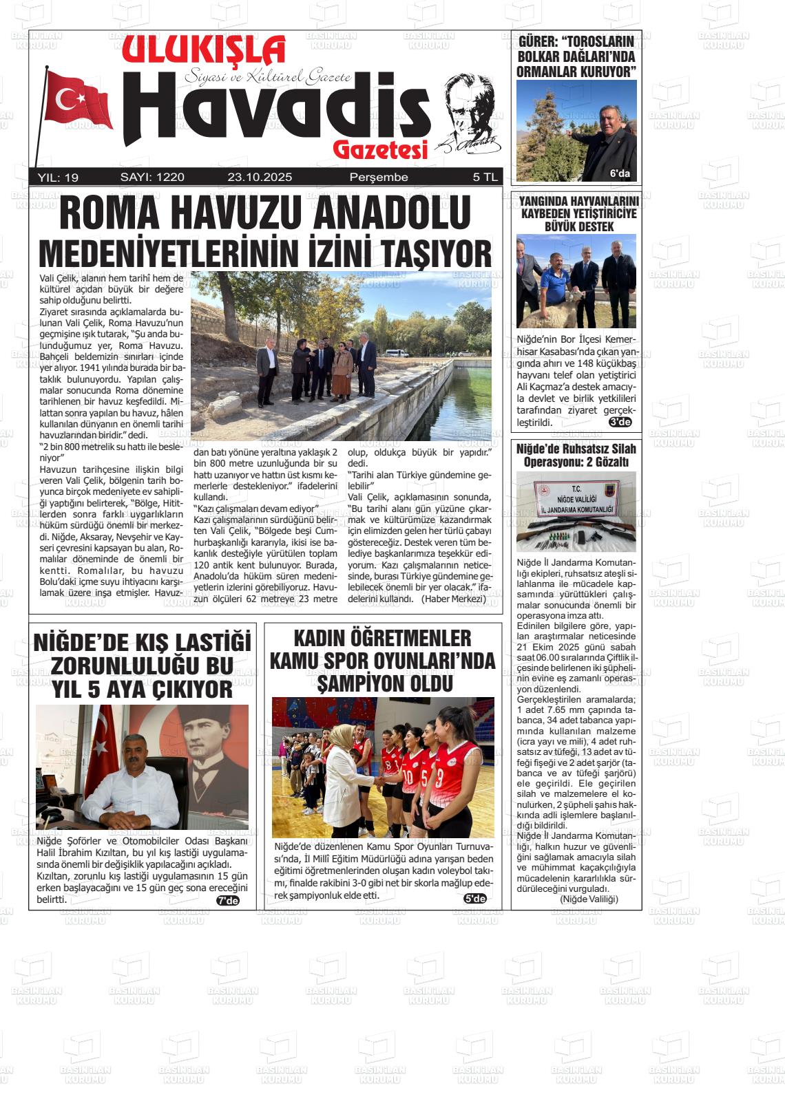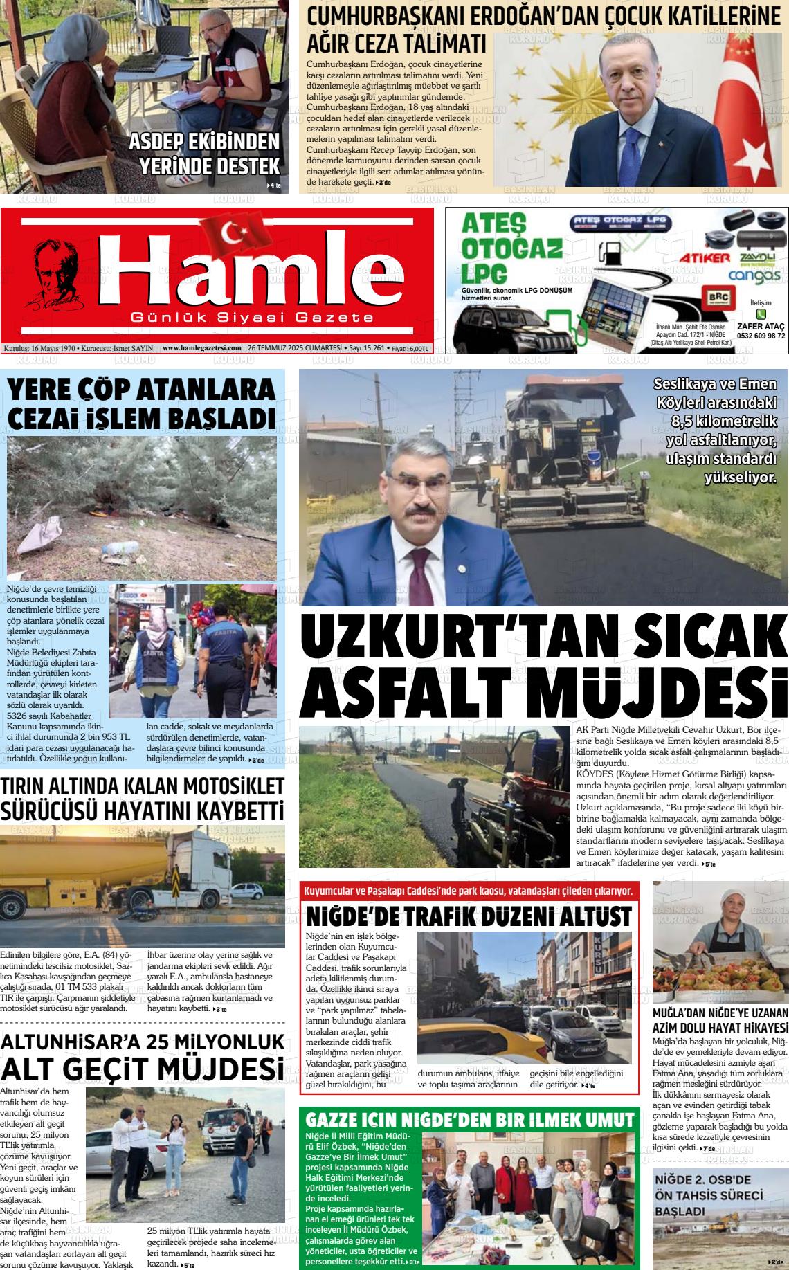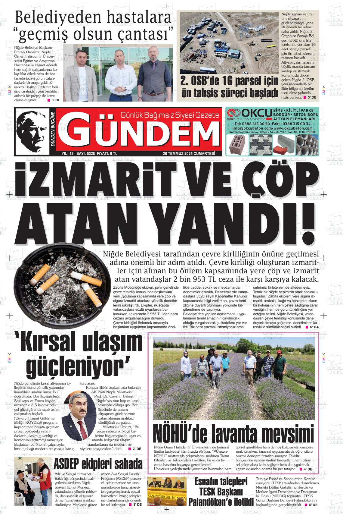 Nİğde Yerel Gazeteleri 08 Aralık 2025, Pazartesi Günü Manşeti
