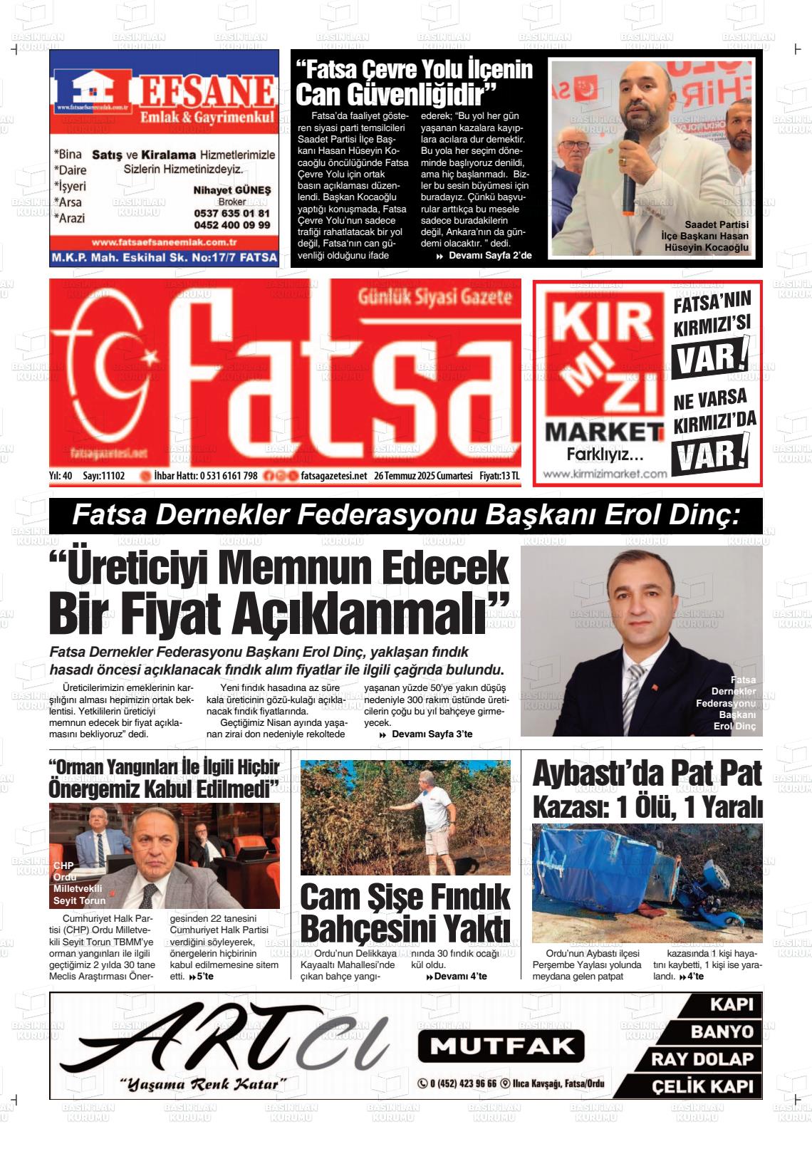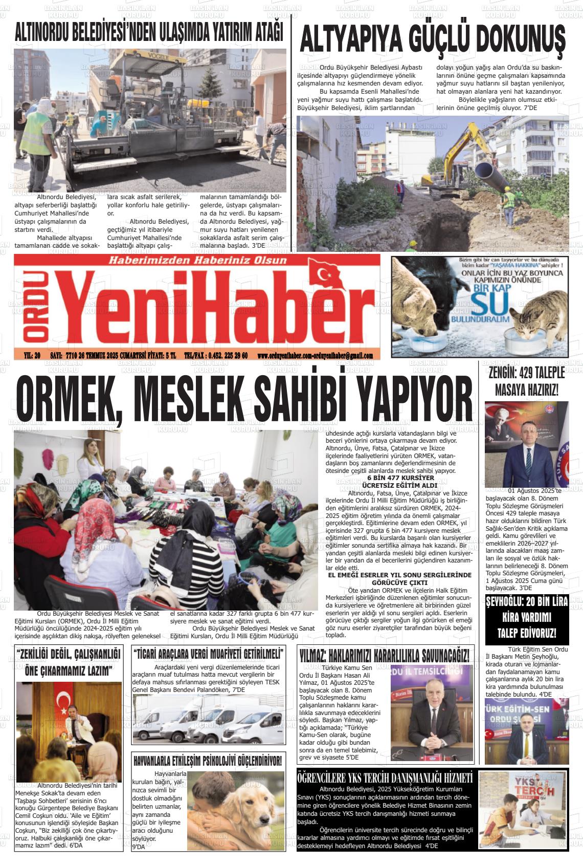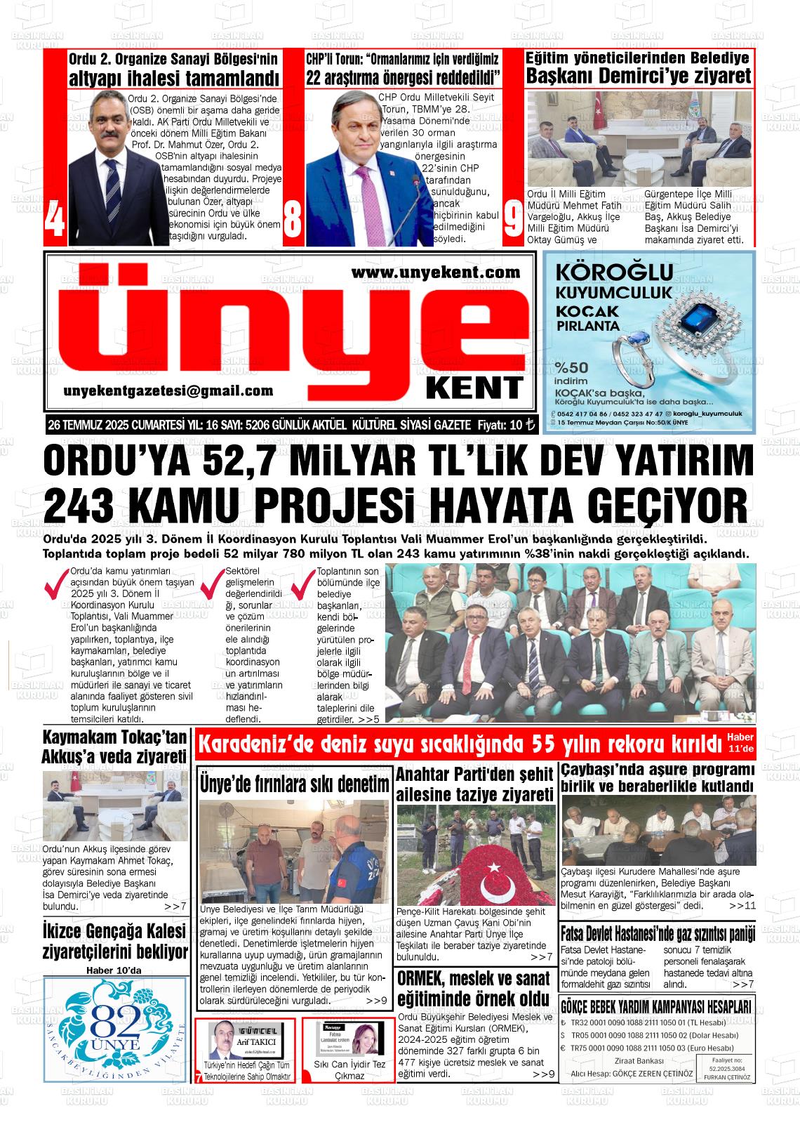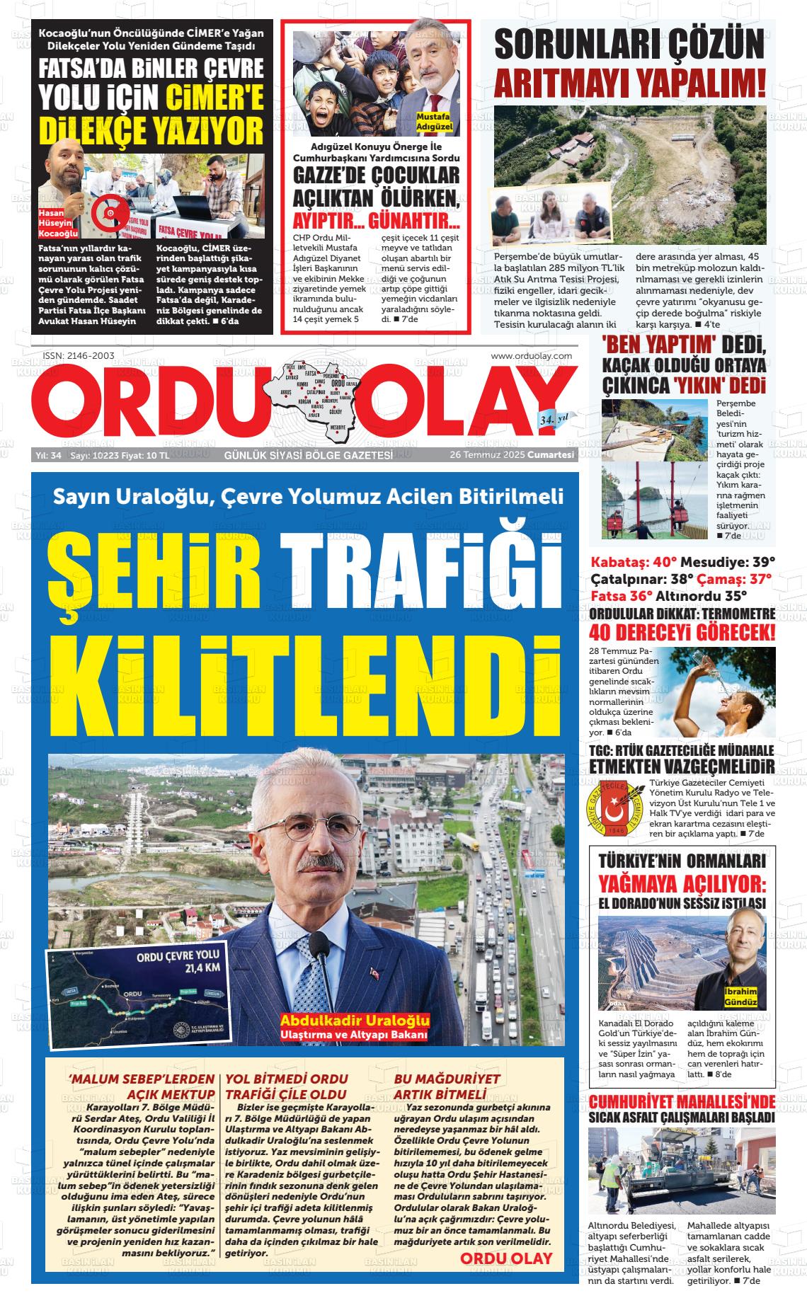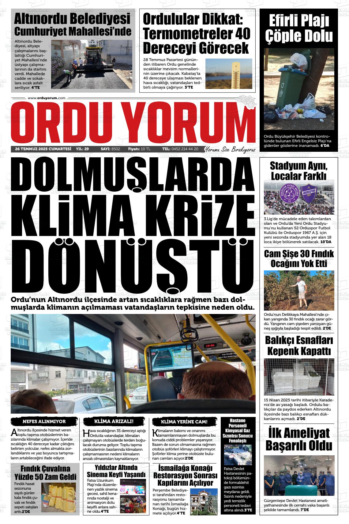 Ordu Yerel Gazeteleri 10 Aralık 2025, Çarşamba Günü Manşeti