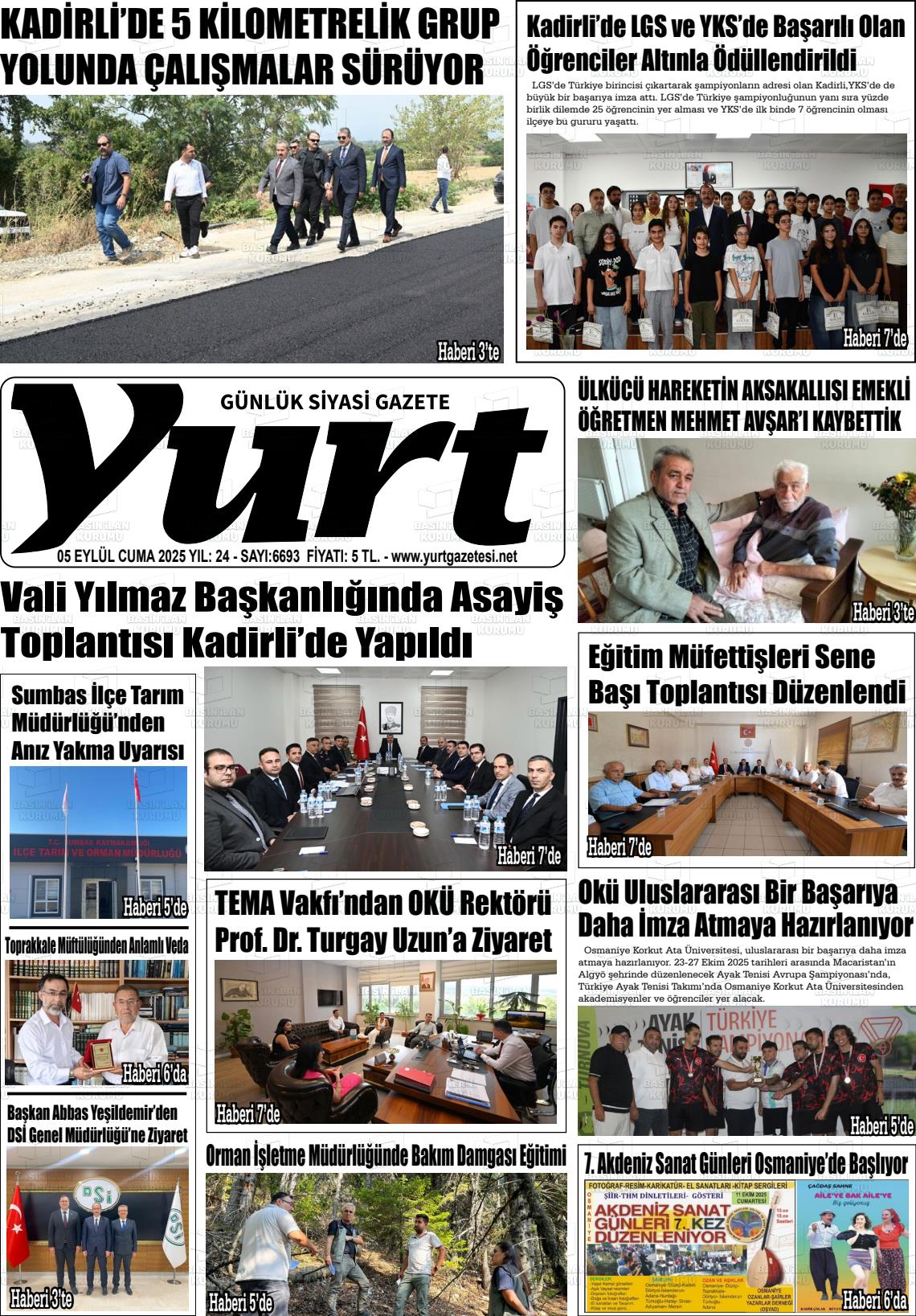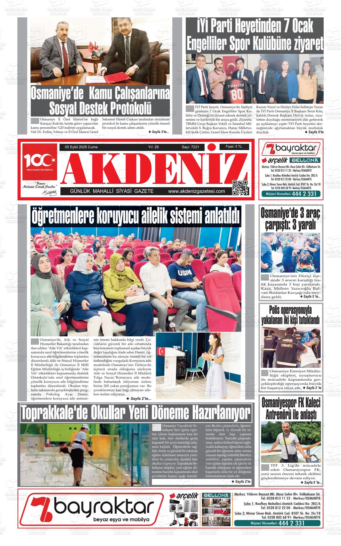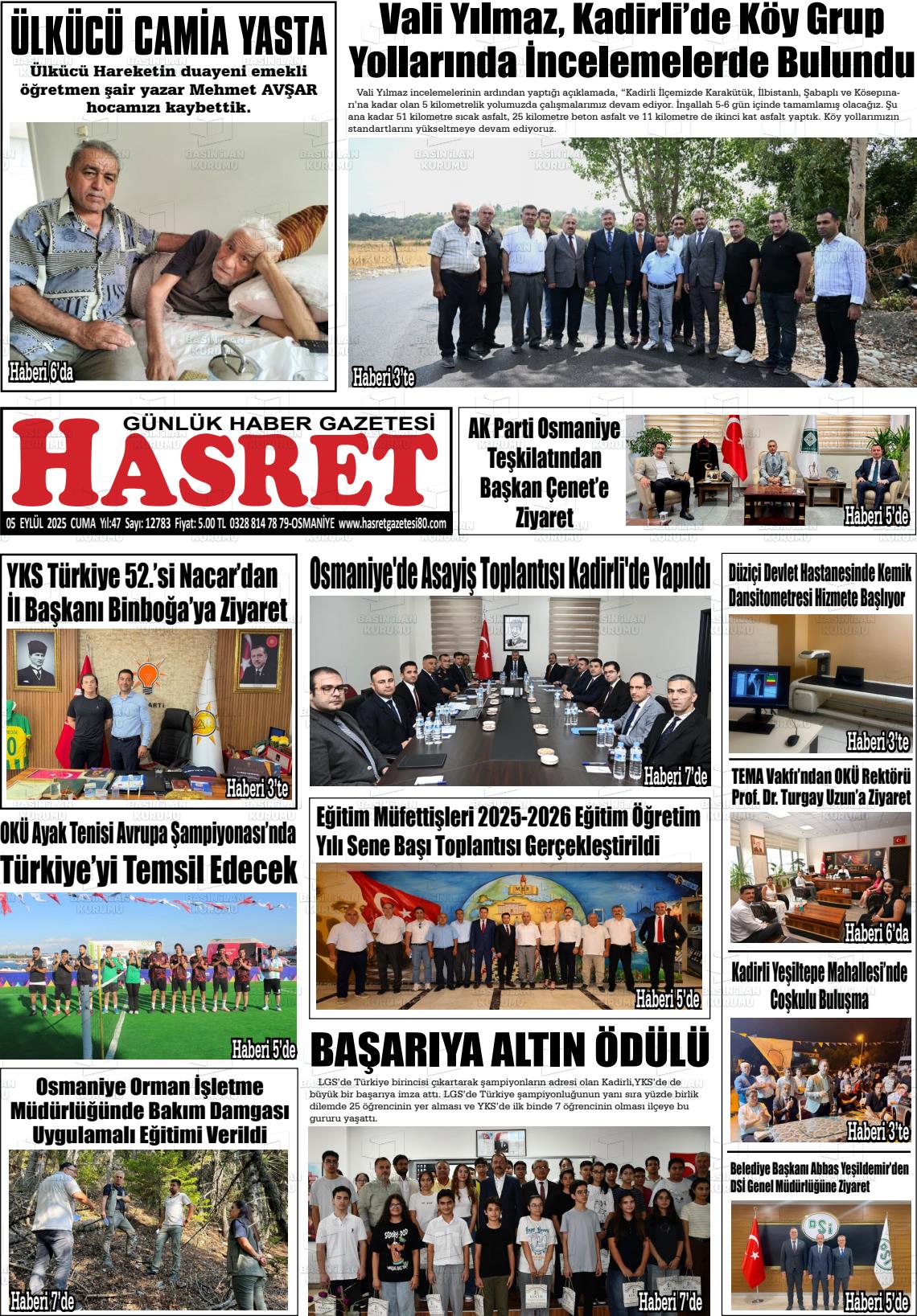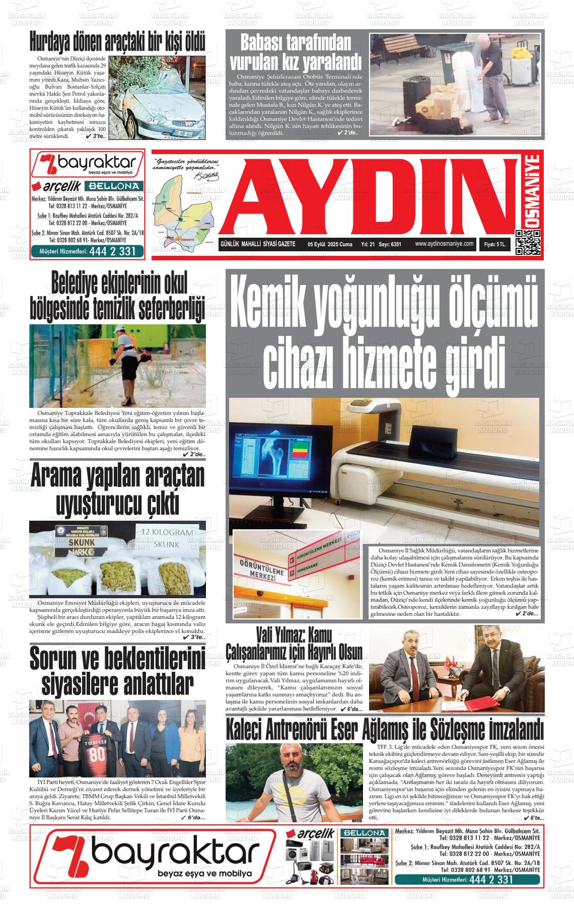 Osmanİye Yerel Gazeteleri 08 Aralık 2025, Pazartesi Günü Manşeti
