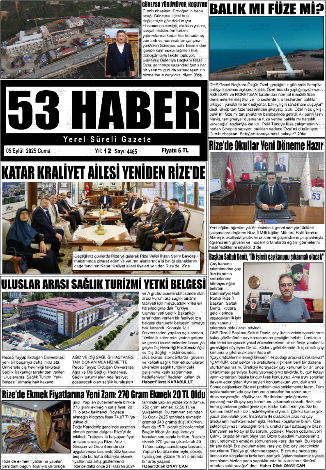 Rİze Yerel Gazeteleri 08 Aralık 2025, Pazartesi Günü Manşeti