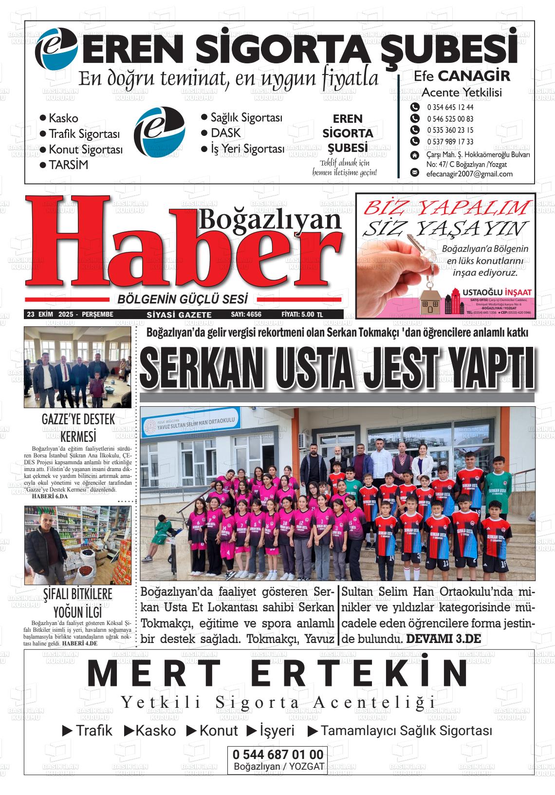 Yozgat Yerel Gazeteleri 23 Ekim 2025, Perşembe Günü Manşeti